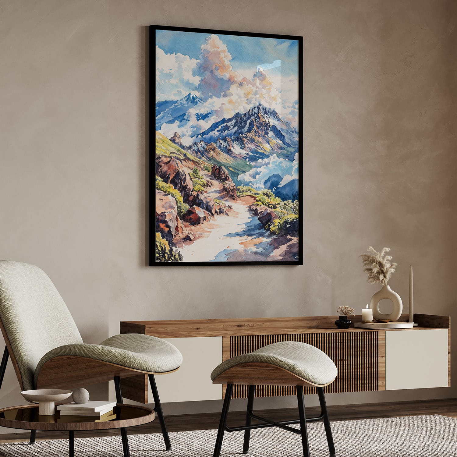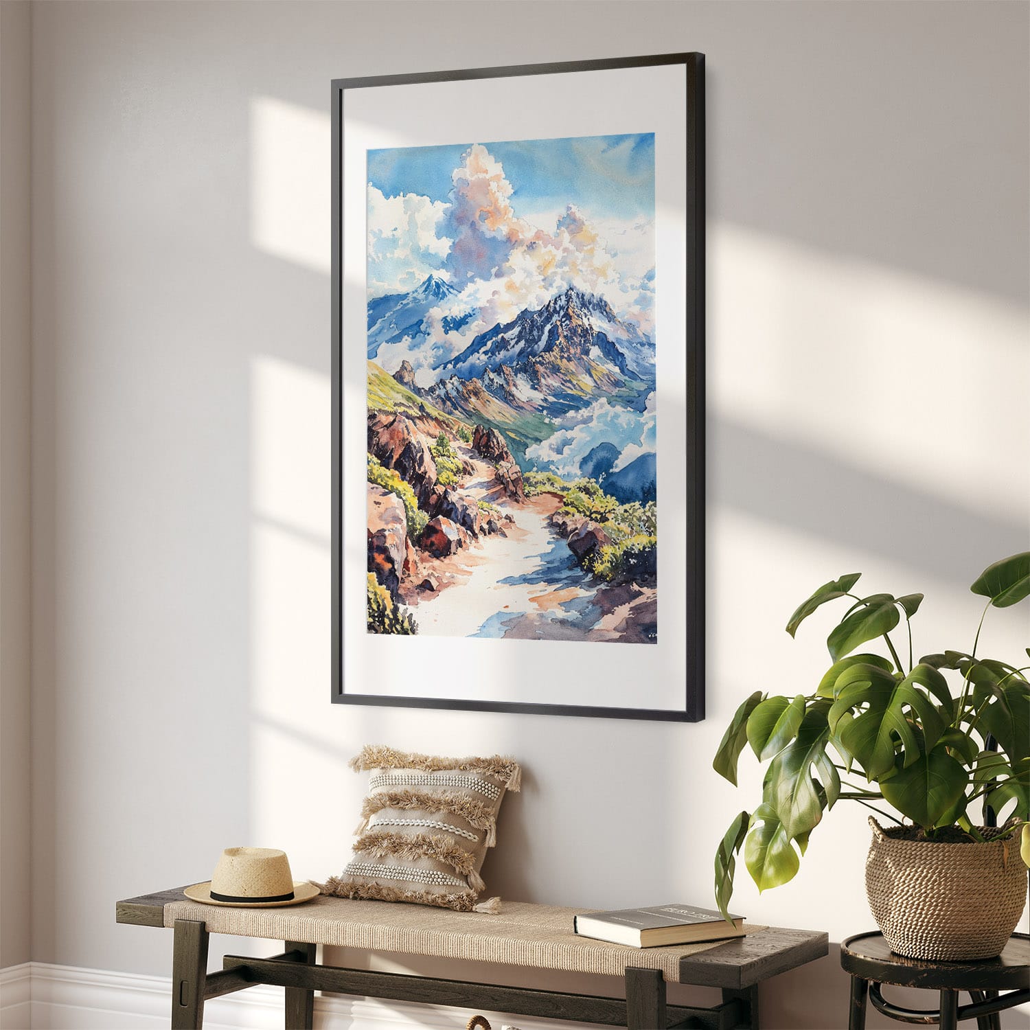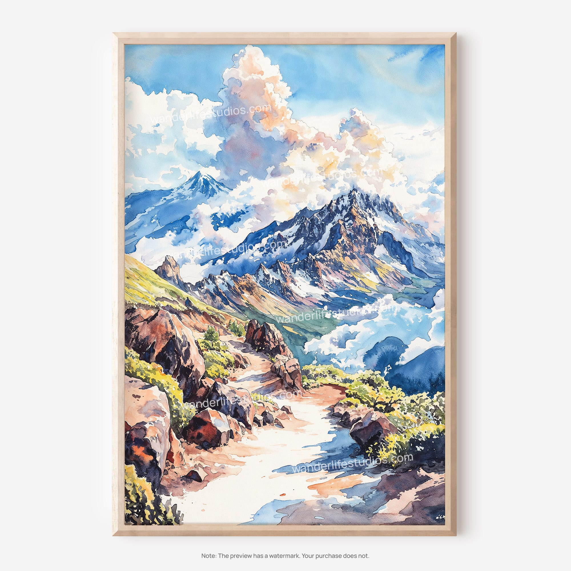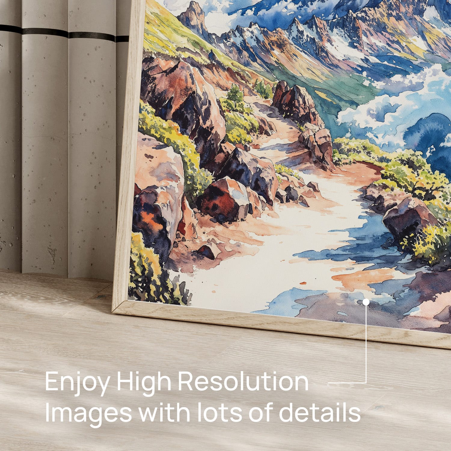 Add a touch of nature to your space with this Haleakalā National Park digital download wall art. The vibrant watercolor captures majestic mountains and clouds, offering instant accessibility for easy printing at home or through a print shop.