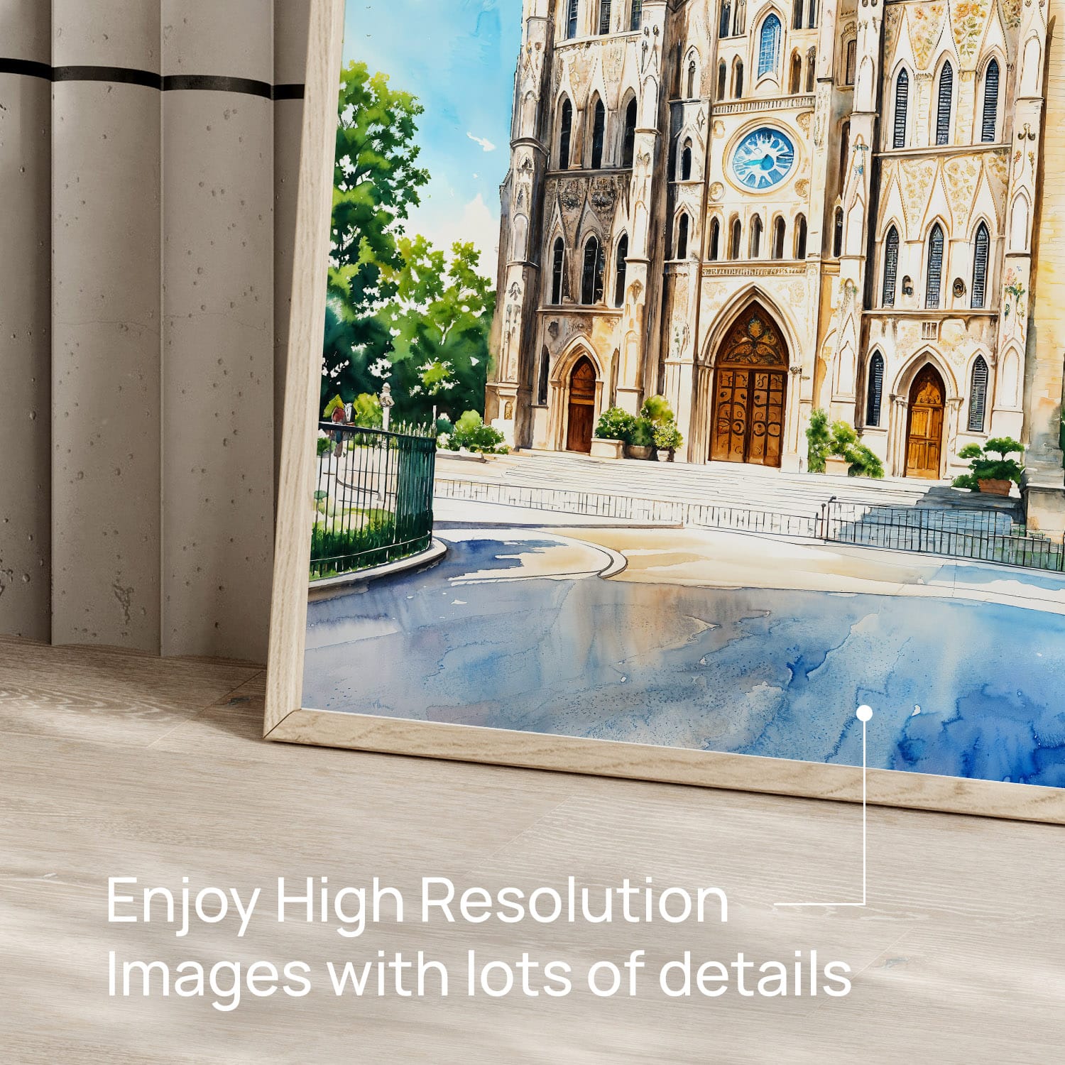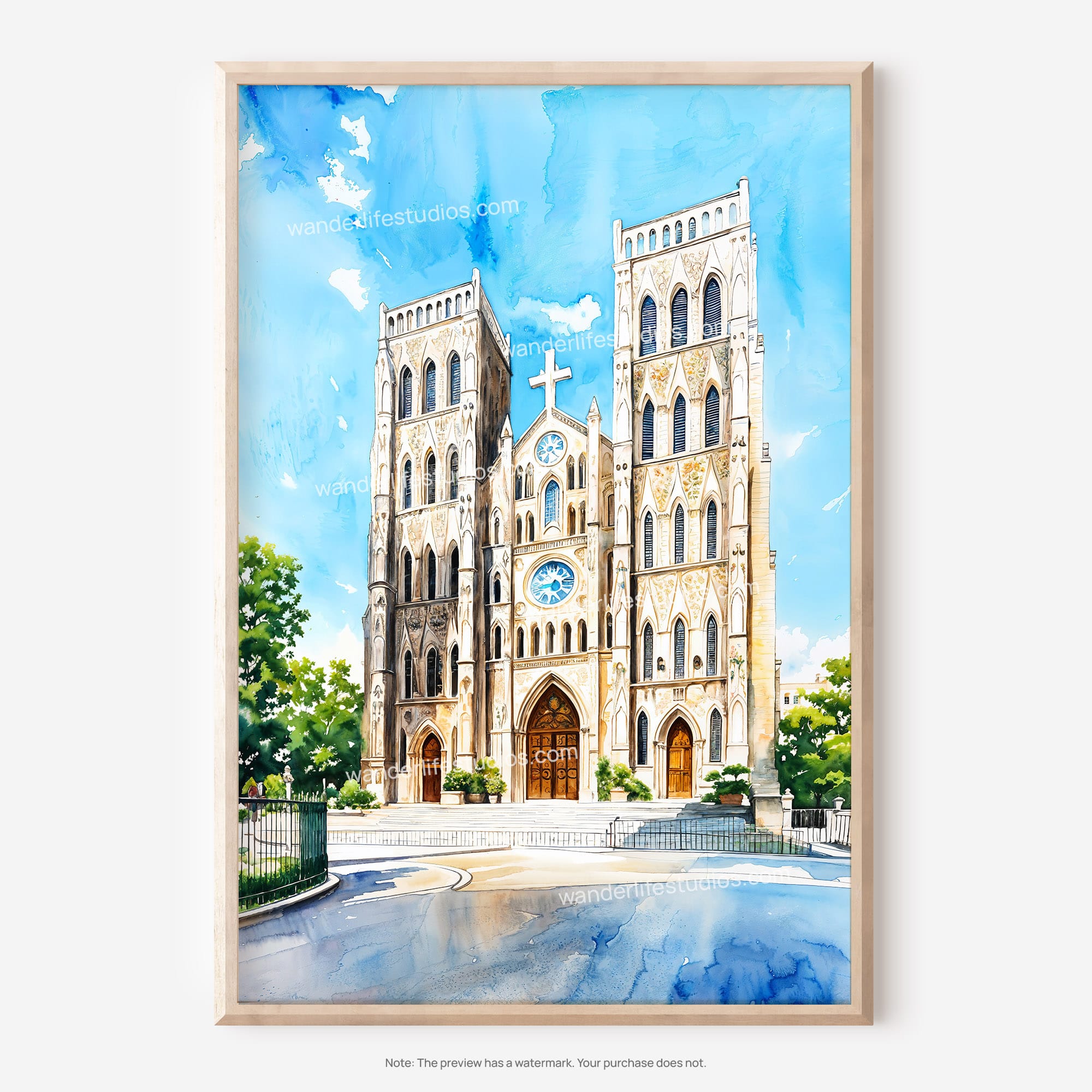 Hanoi St. Joseph’s Cathedral Art Print – Watercolor Style Digital Download