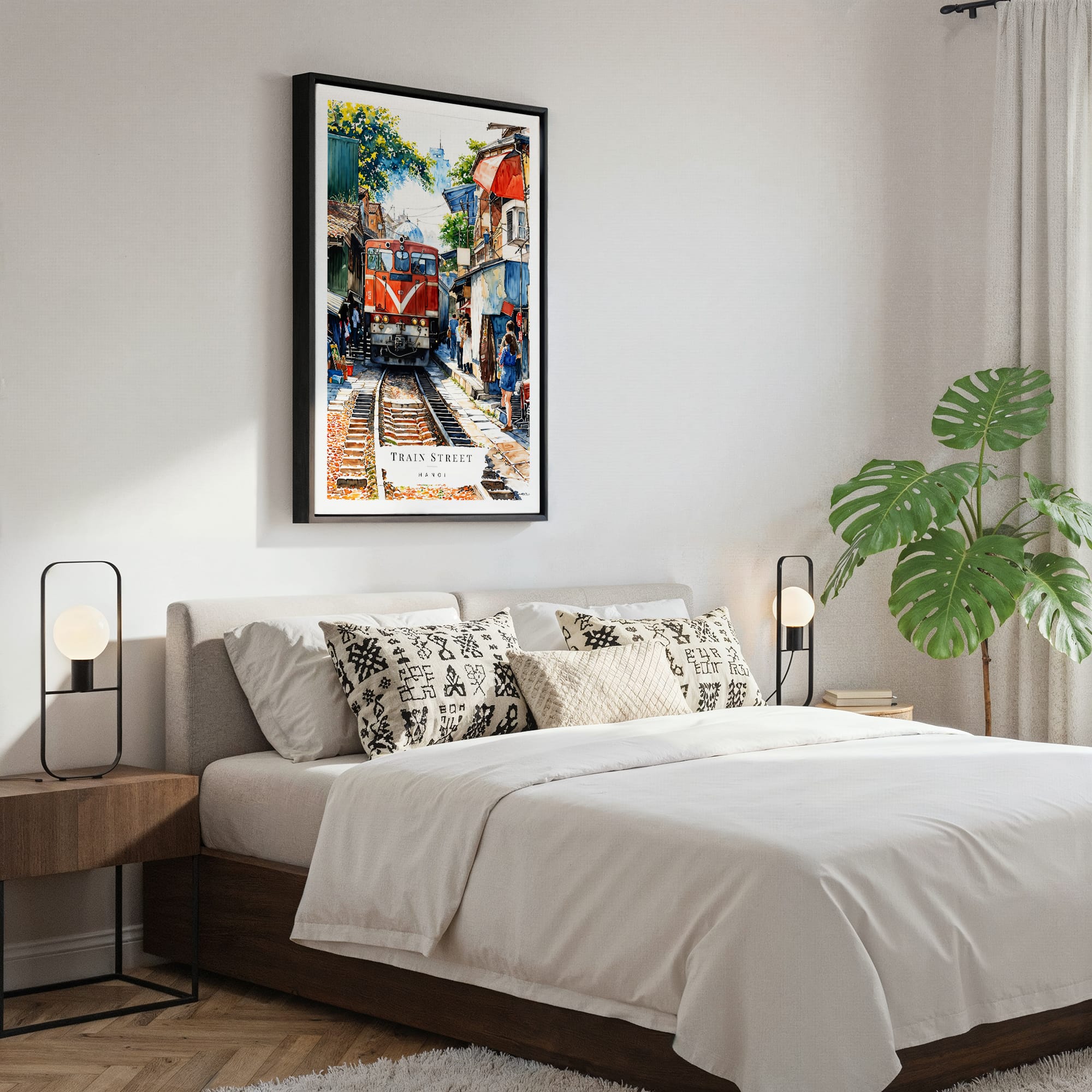 Hanoi Train Street Vietnam Canvas Art Print – Watercolor Style Urban Scene Wall Art