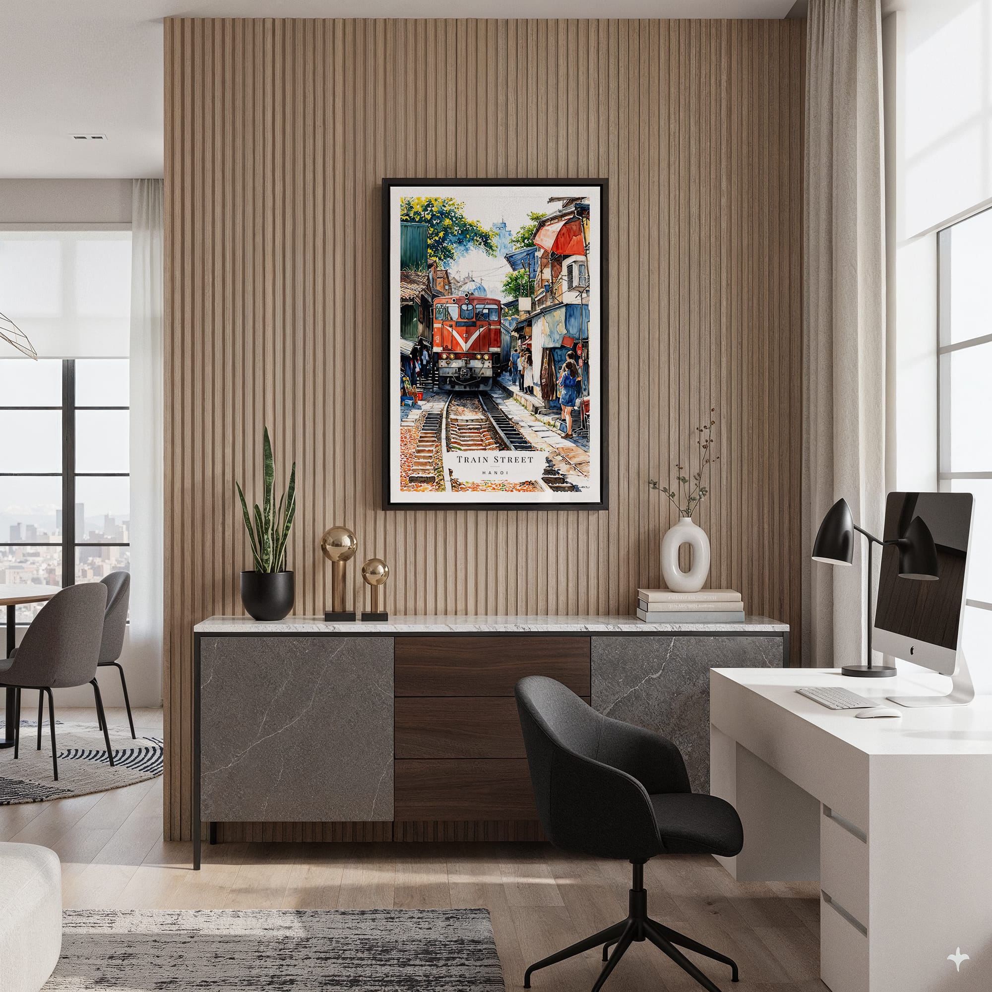 This Hanoi Train Street canvas art print captures the vibrant life of the bustling street with warm tones and intricate details. It’s a charming addition to any room, making it perfect for home updates or thoughtful gifts.