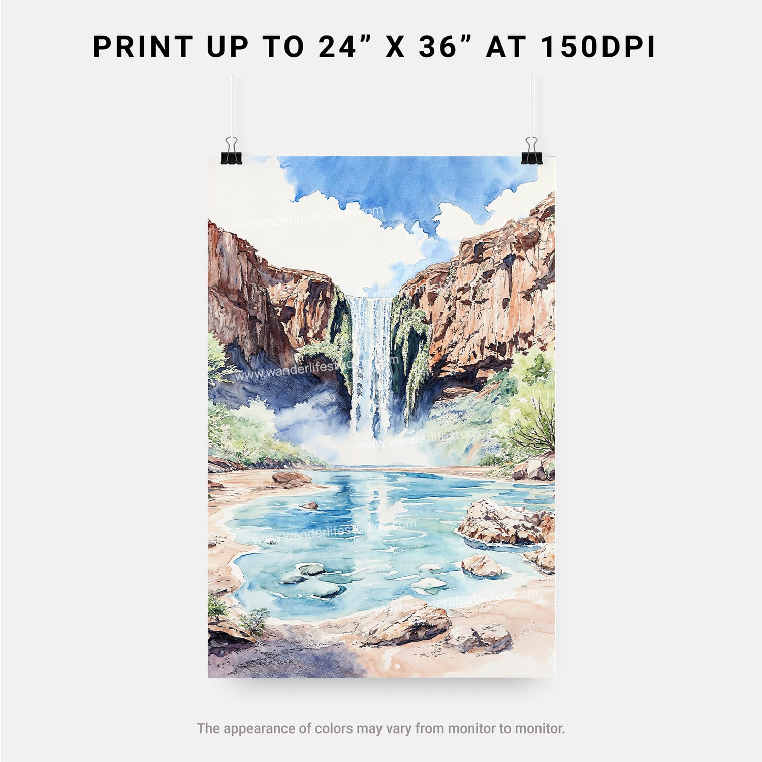 Havasu Falls Watercolor Art – Digital Download Landscape Print