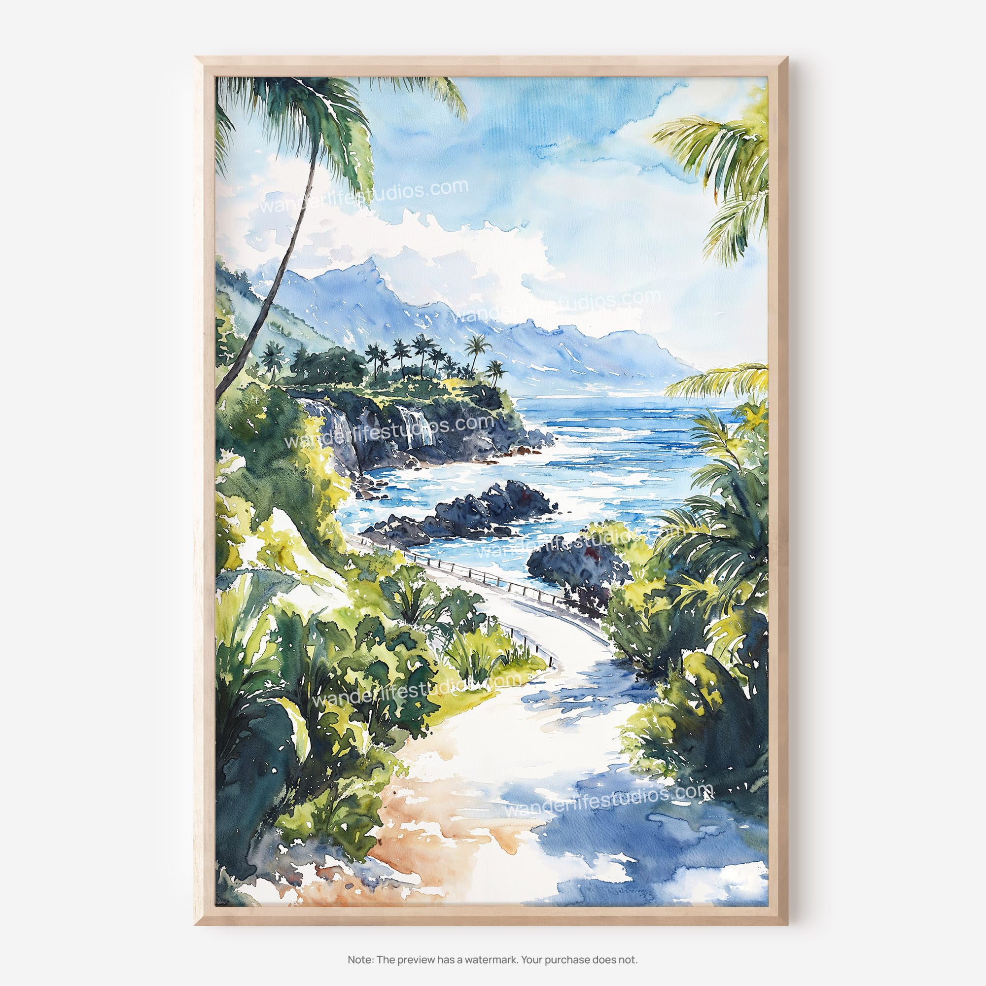 Hawaii Road to Hana Watercolor Digital Download Wall Art