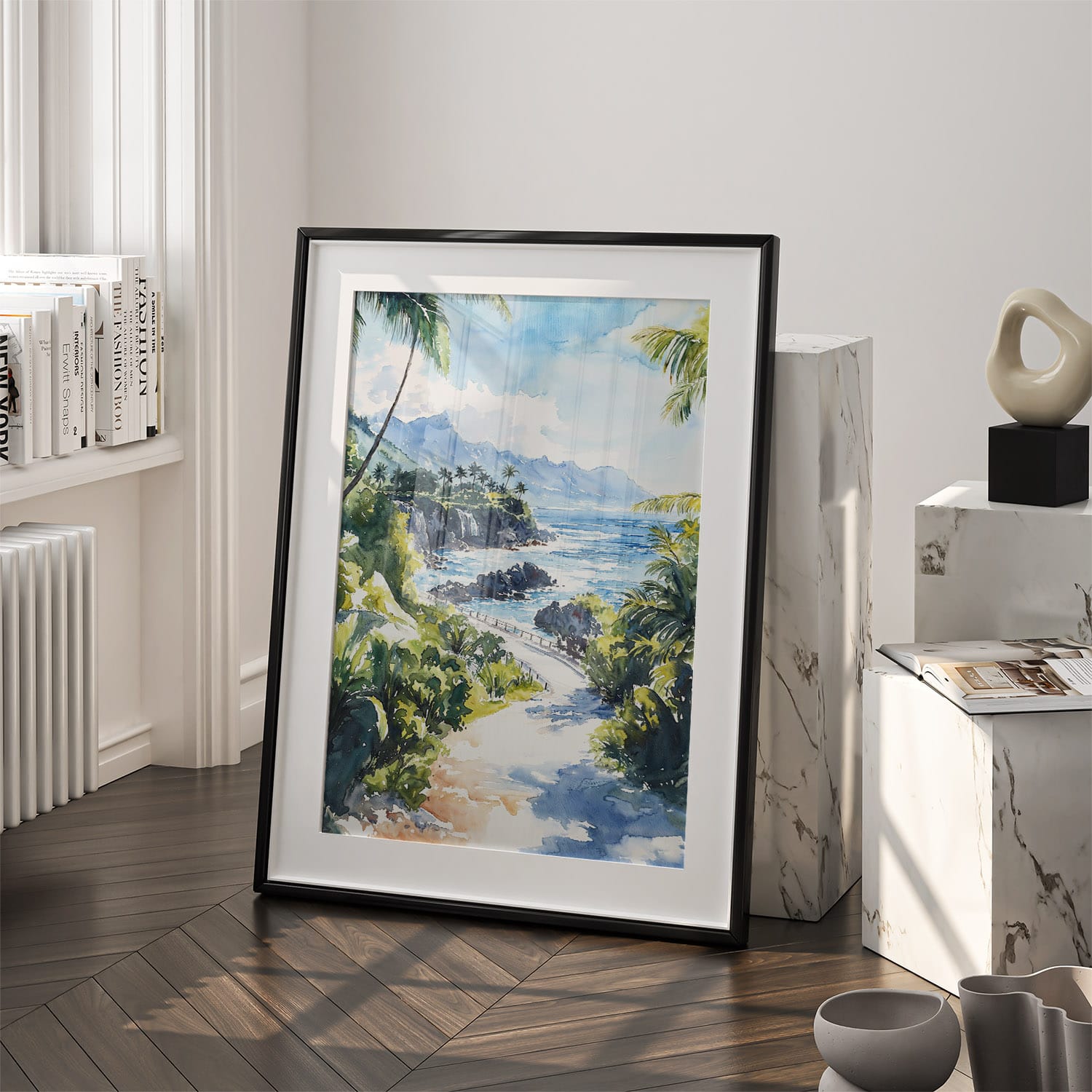 Hawaii Road to Hana Watercolor Art – Coastal Landscape Digital Download