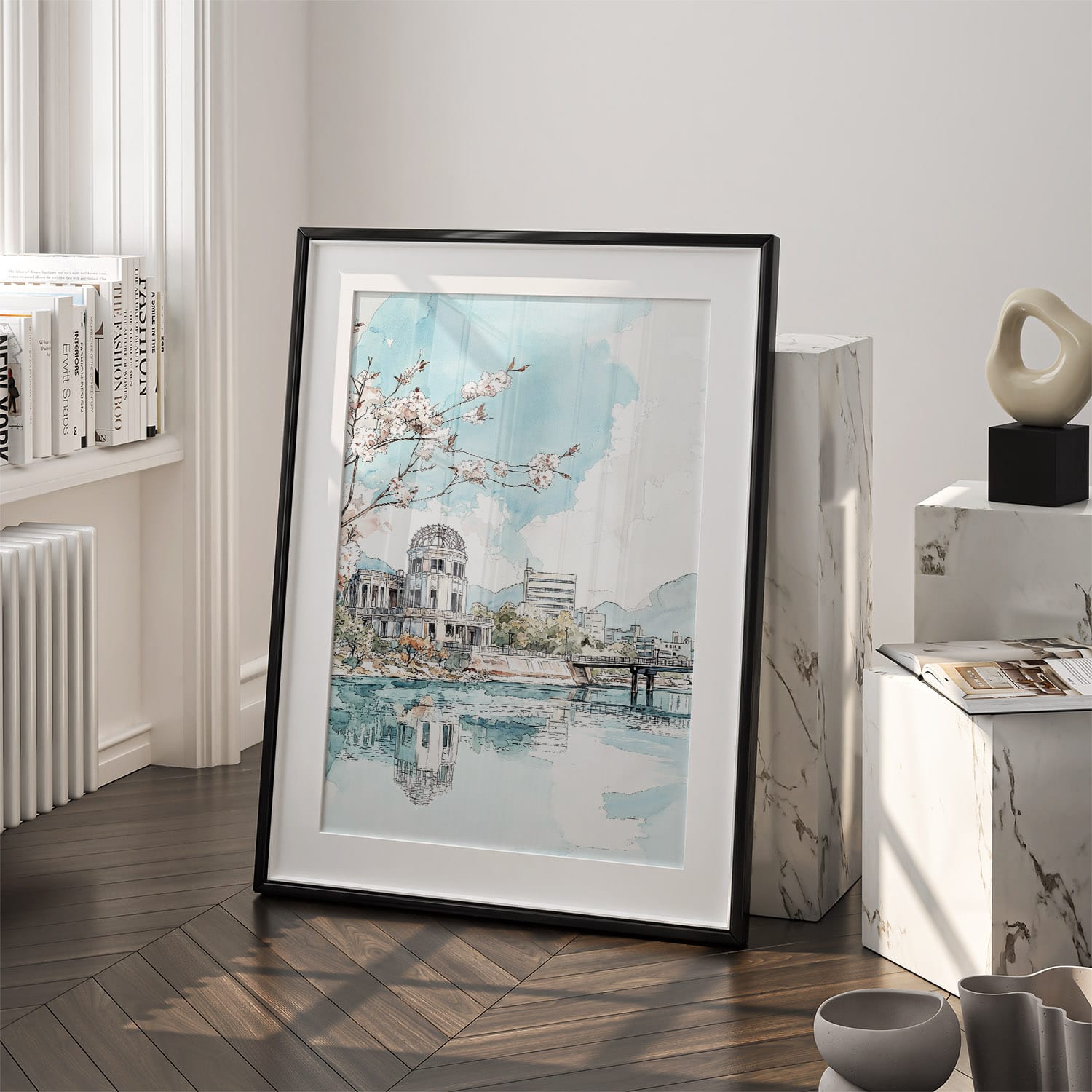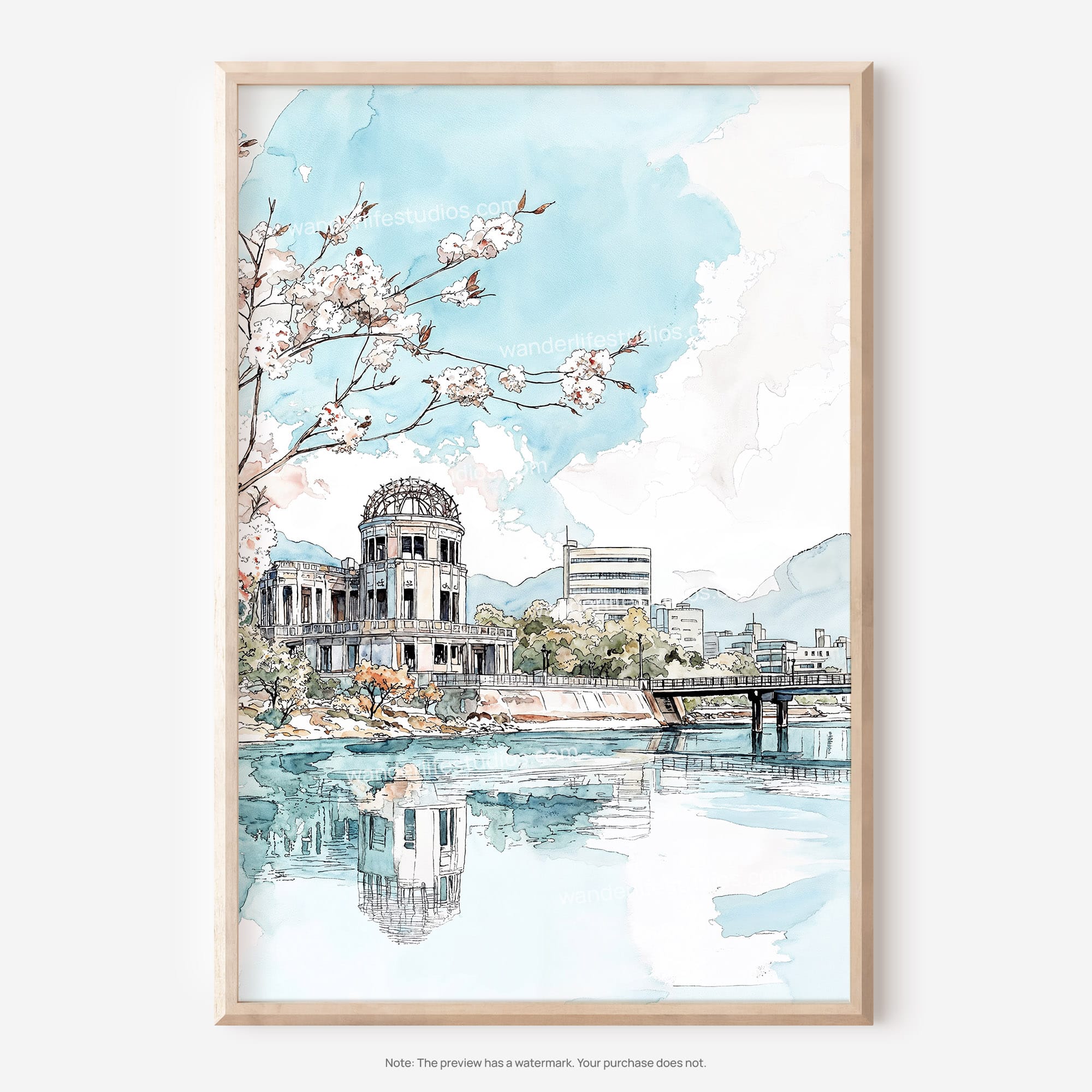 Hiroshima Watercolor Art Print – Scenic Digital Download of Iconic Landmark