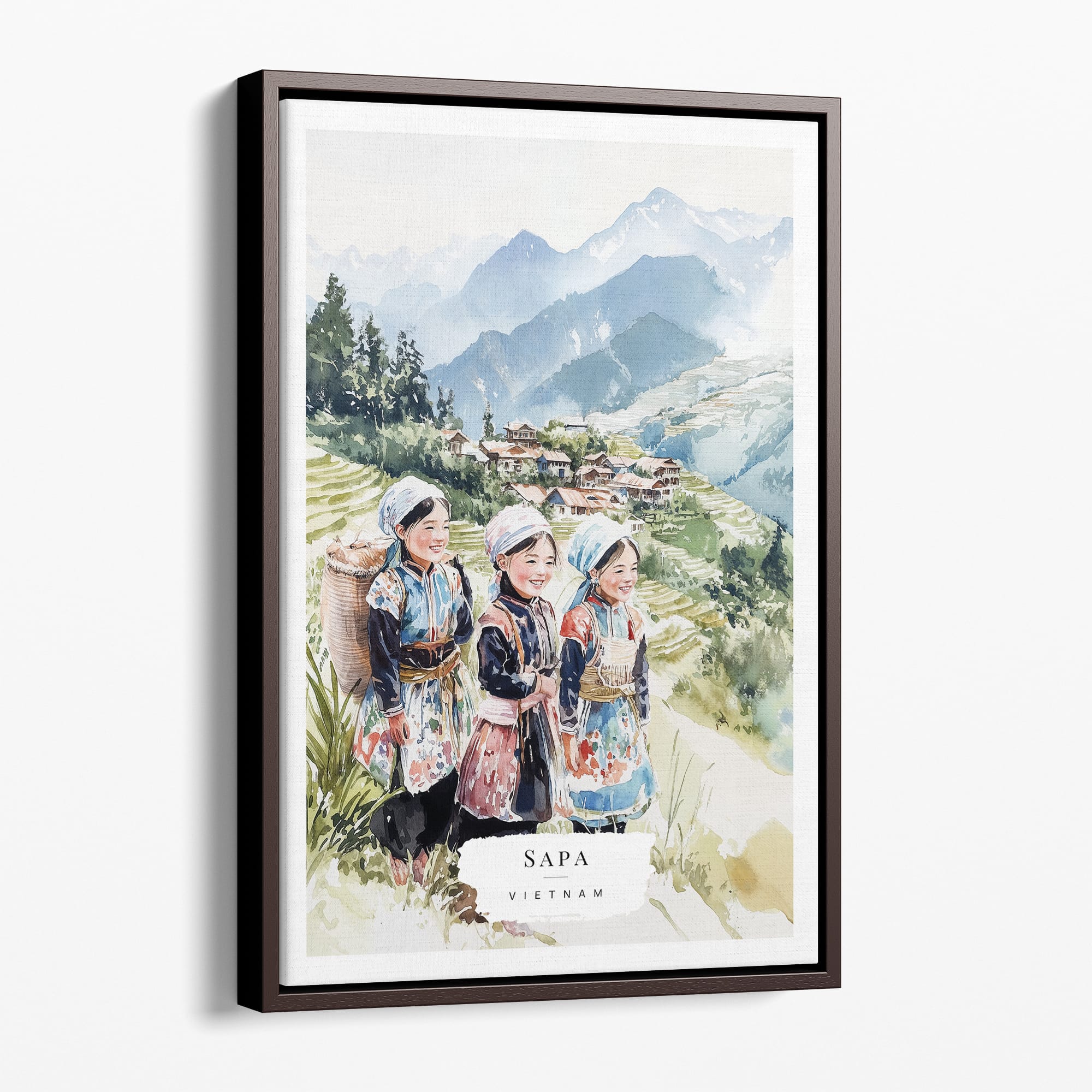 Hmong People in Sapa Vietnam Canvas Art Print – Colorful Watercolor Portrait
