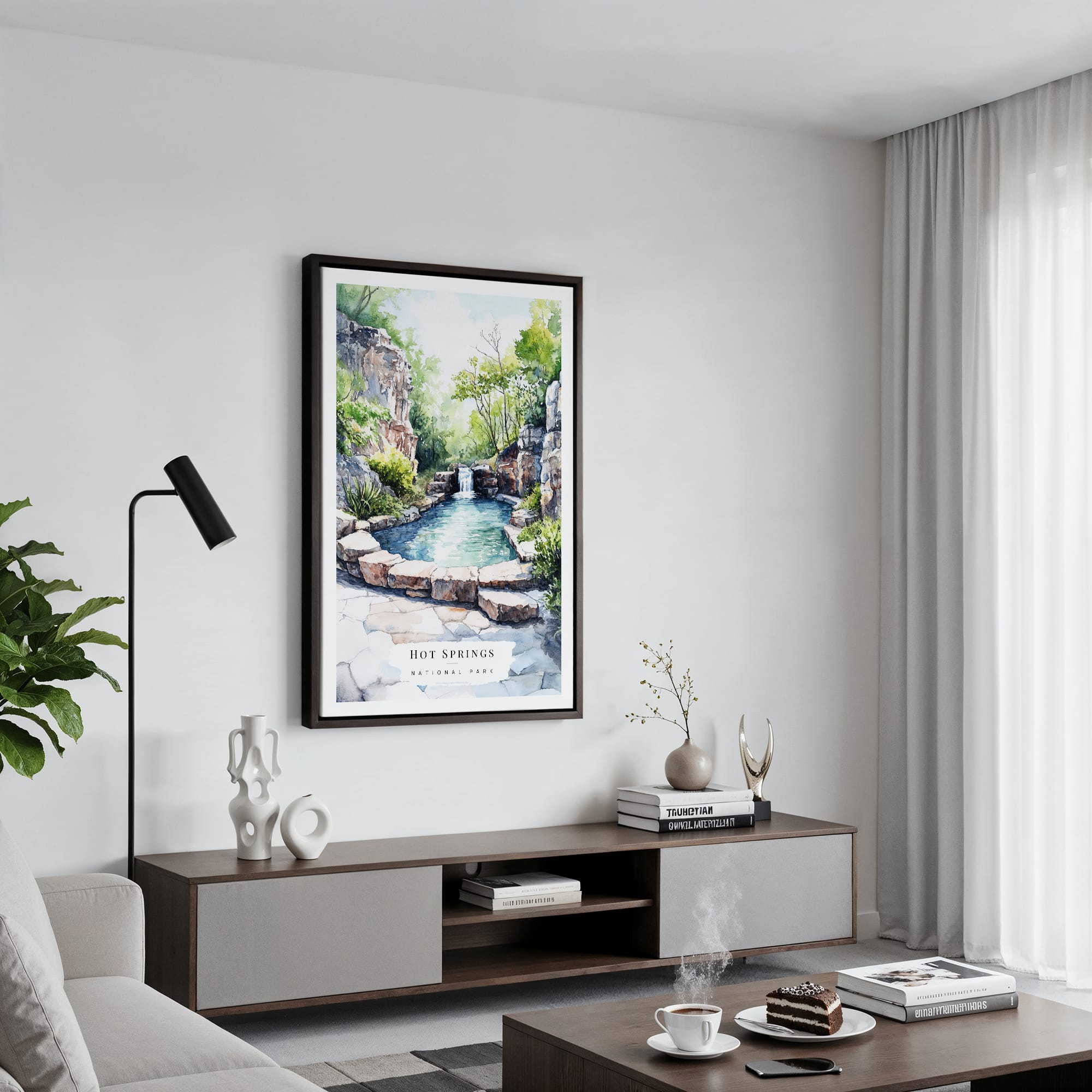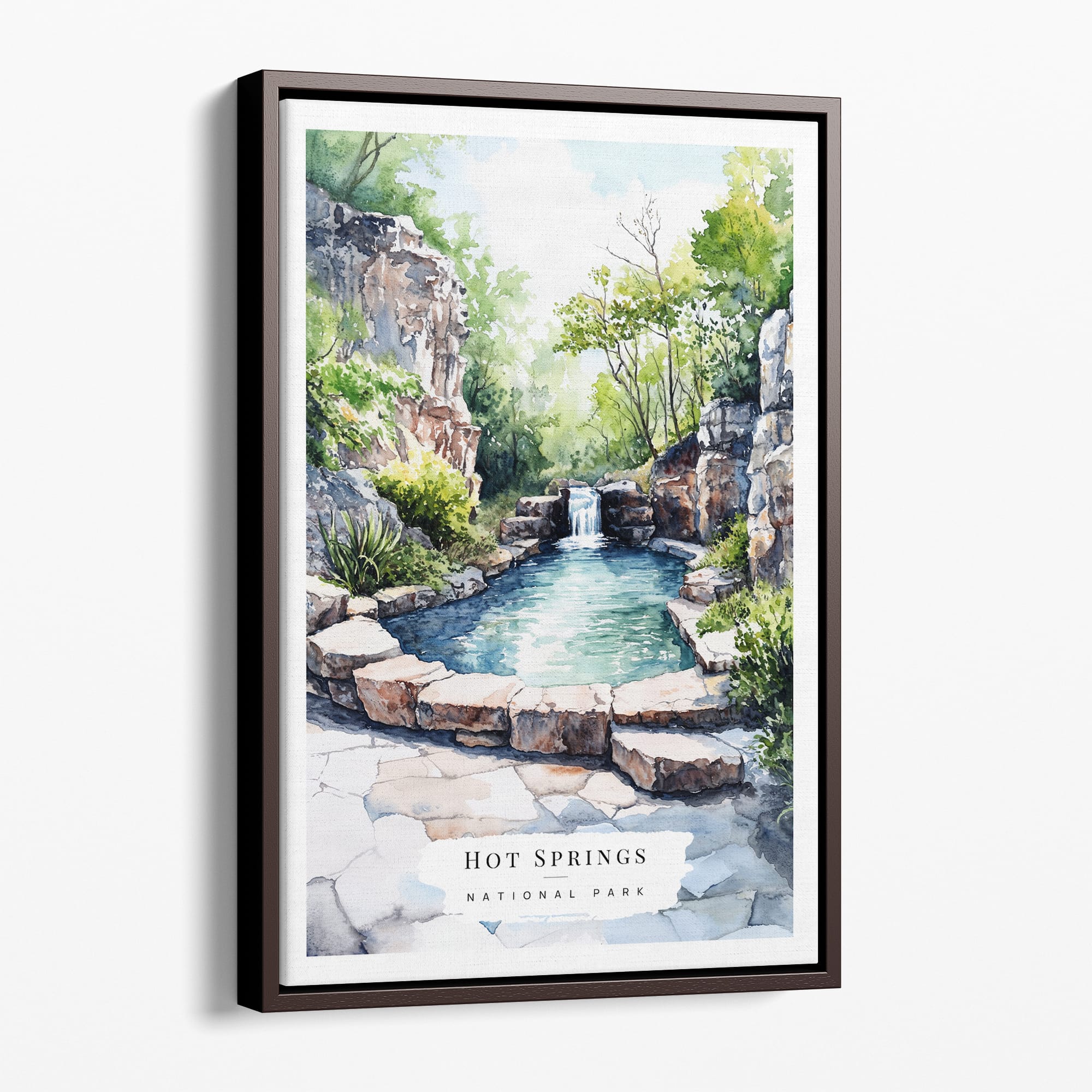 Hot Springs National Park Watercolor Canvas Print – Serene Nature Scene Wall Art