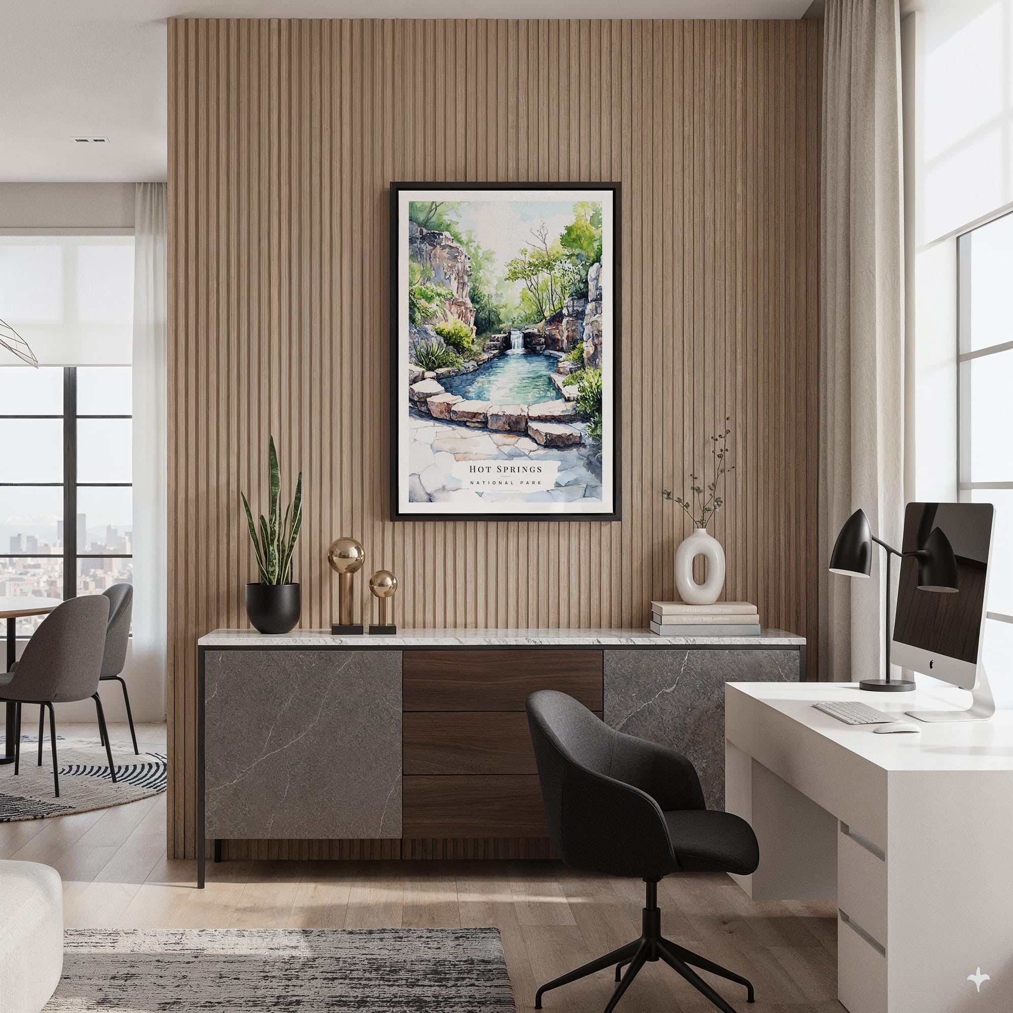 This artwork highlights the lush greenery and soothing water of Hot Springs National Park. The vibrant colors create a warm atmosphere in your home, making it a delightful focal point. Printed on high-quality canvas with fade-resistant inks, it arrives ready to hang, suitable for living rooms, bedrooms, or offices. This piece is a great way to personalize your space or to gift someone who appreciates the beauty of nature.