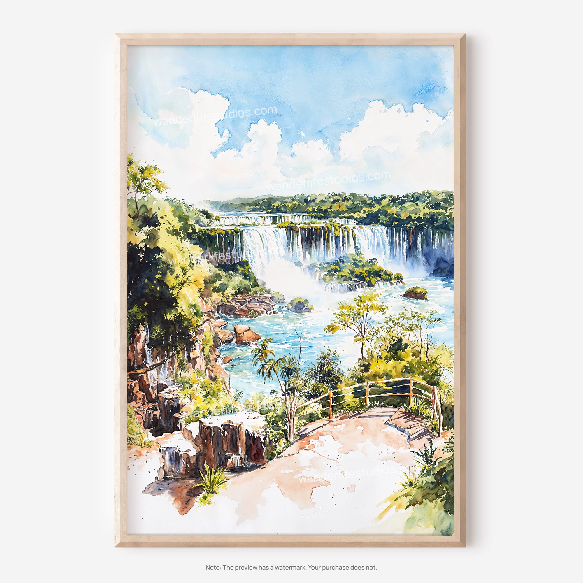 Iguazu Falls Watercolor Digital Download Wall Art