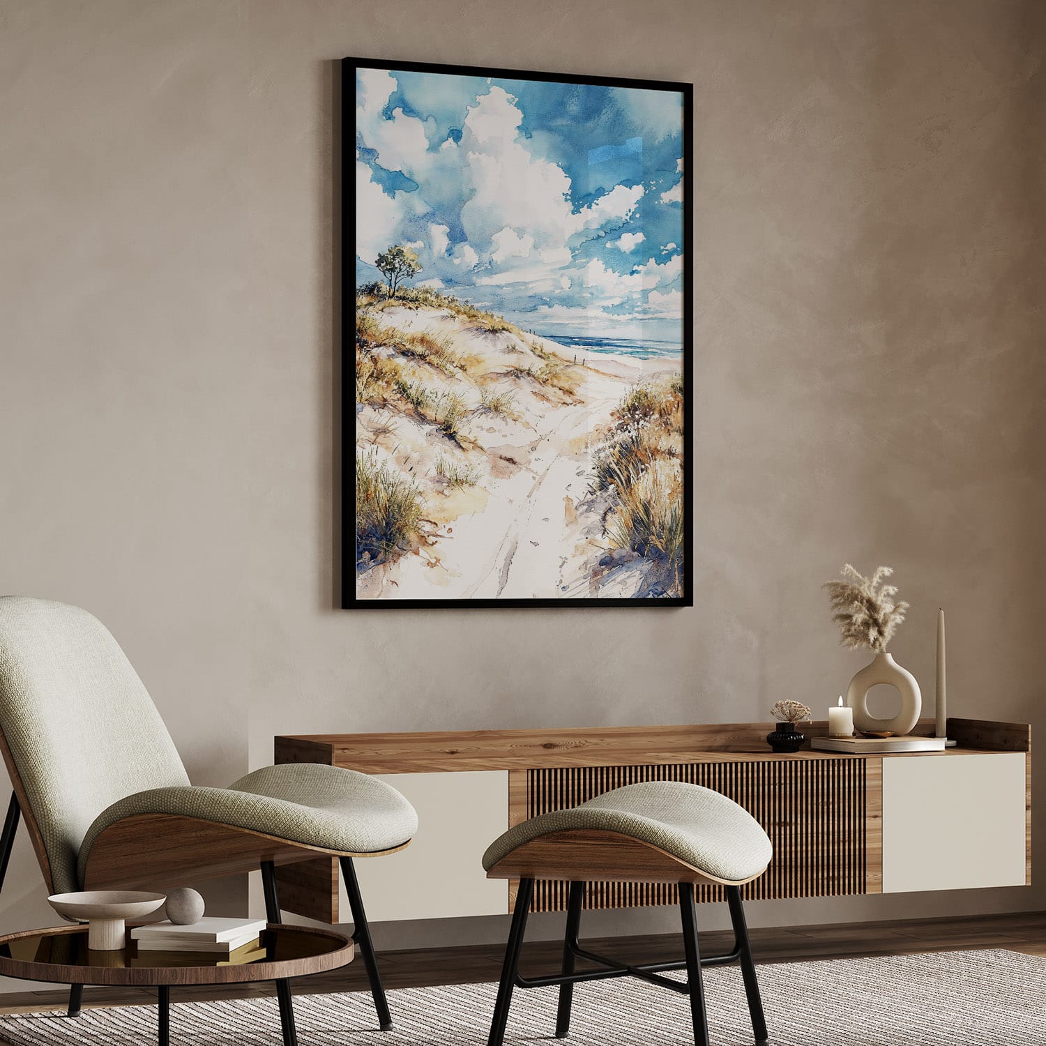 This artwork captures the beauty of Indiana Dunes National Park with its sandy paths and vibrant skies. The warm, inviting colors create a relaxed atmosphere in any setting, making it perfect for living rooms, bedrooms, or offices. Delivered in high-resolution JPG format, you can print it in various sizes from home or at a print shop. Enjoy instant access to this piece and bring a piece of nature into your home.