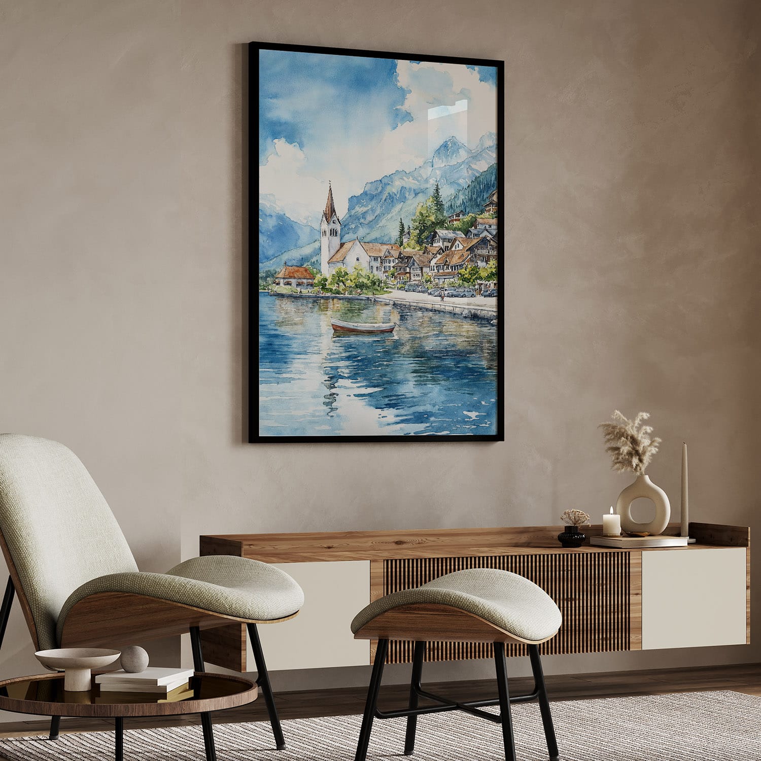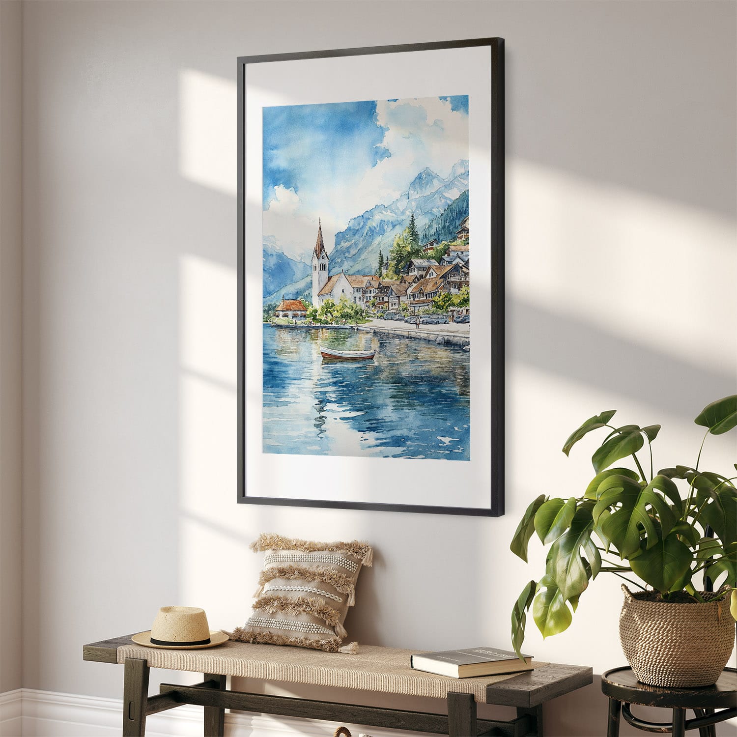 Interlaken Watercolor Art Print – Serene Landscape Digital Download
