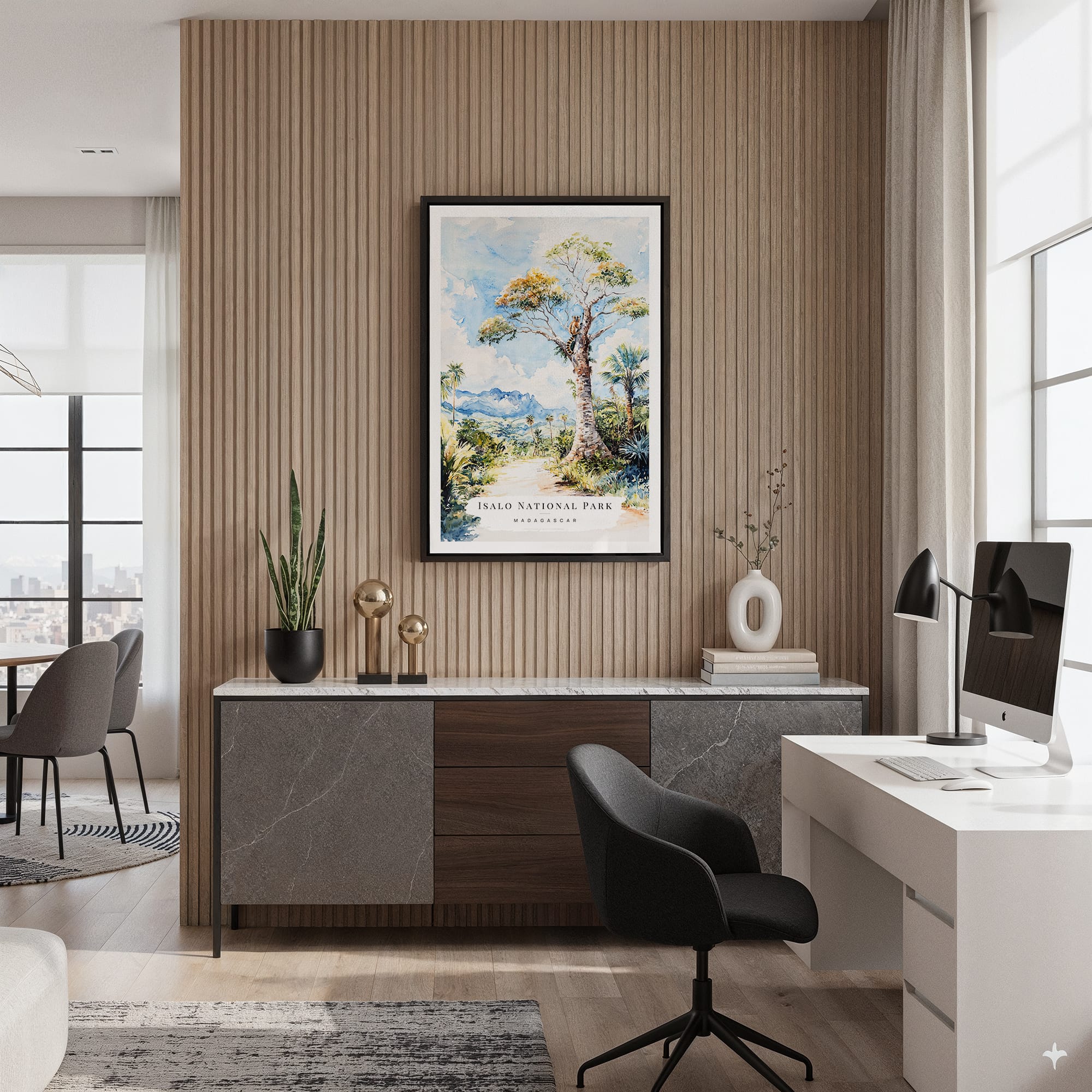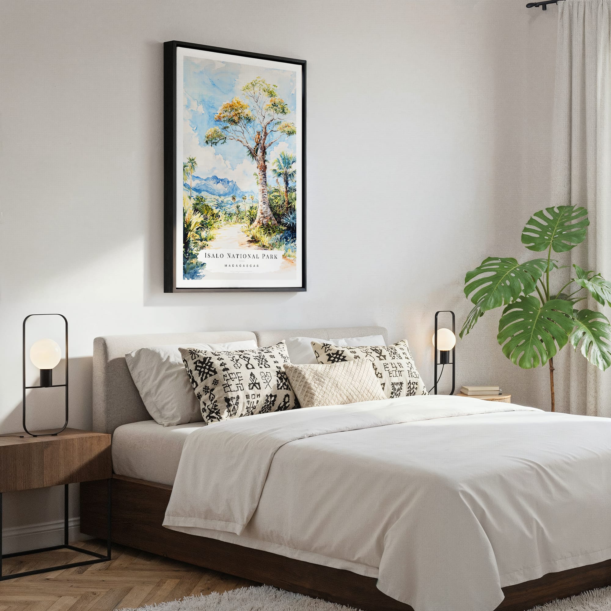 Enhance your space with this Isalo National Park canvas art print, featuring vibrant greens and earth tones. The tranquil scene makes it a great addition to any room or a thoughtful gift for outdoor enthusiasts.