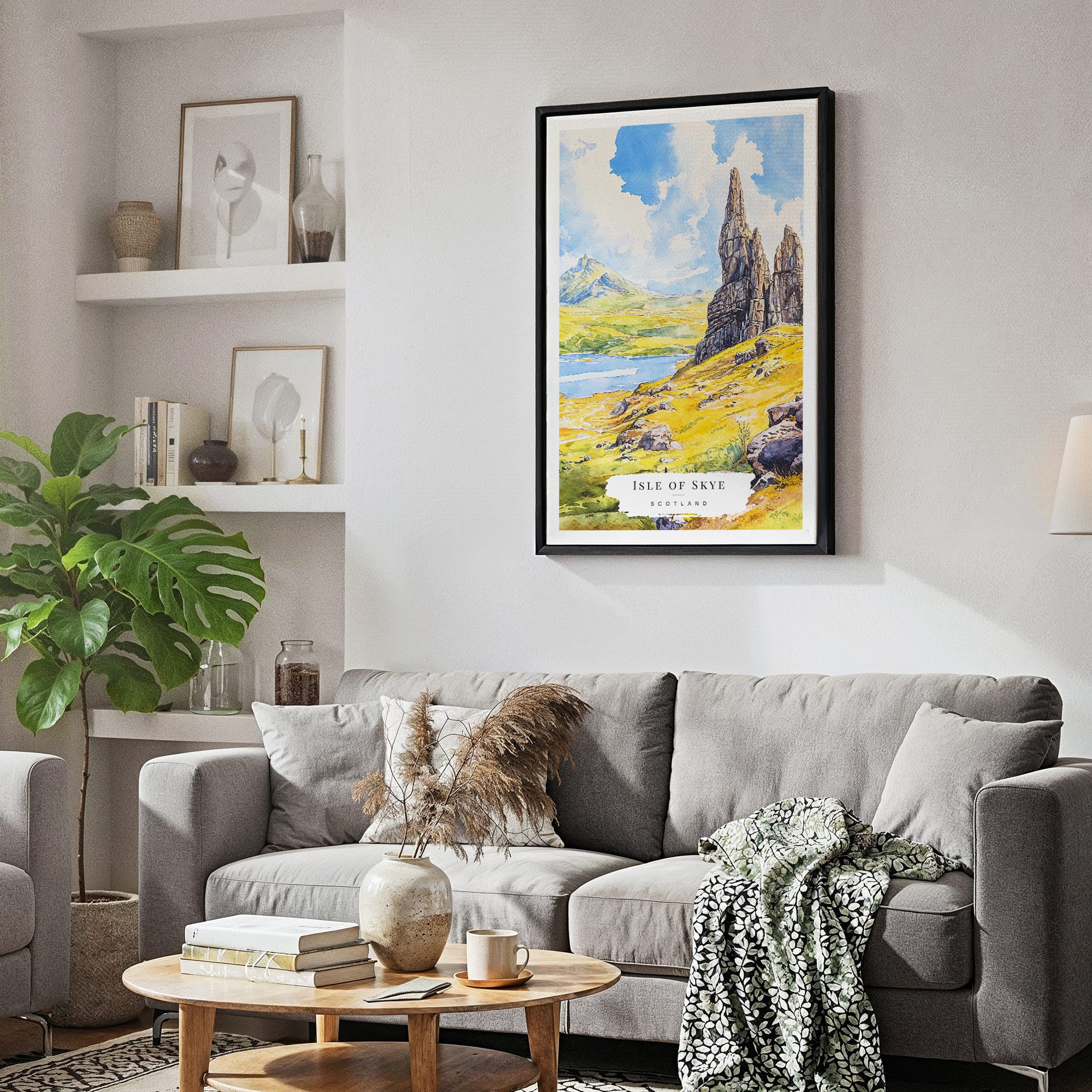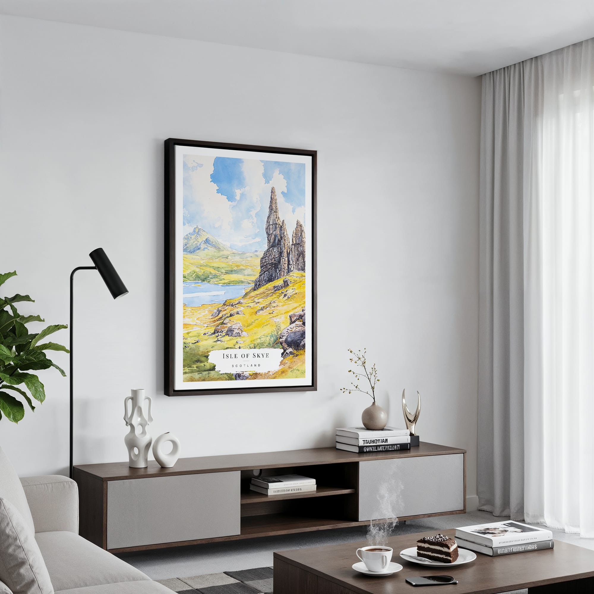 Isle of Skye Watercolor Canvas Art Print – Scenic Scotland Landscape Wall Decor