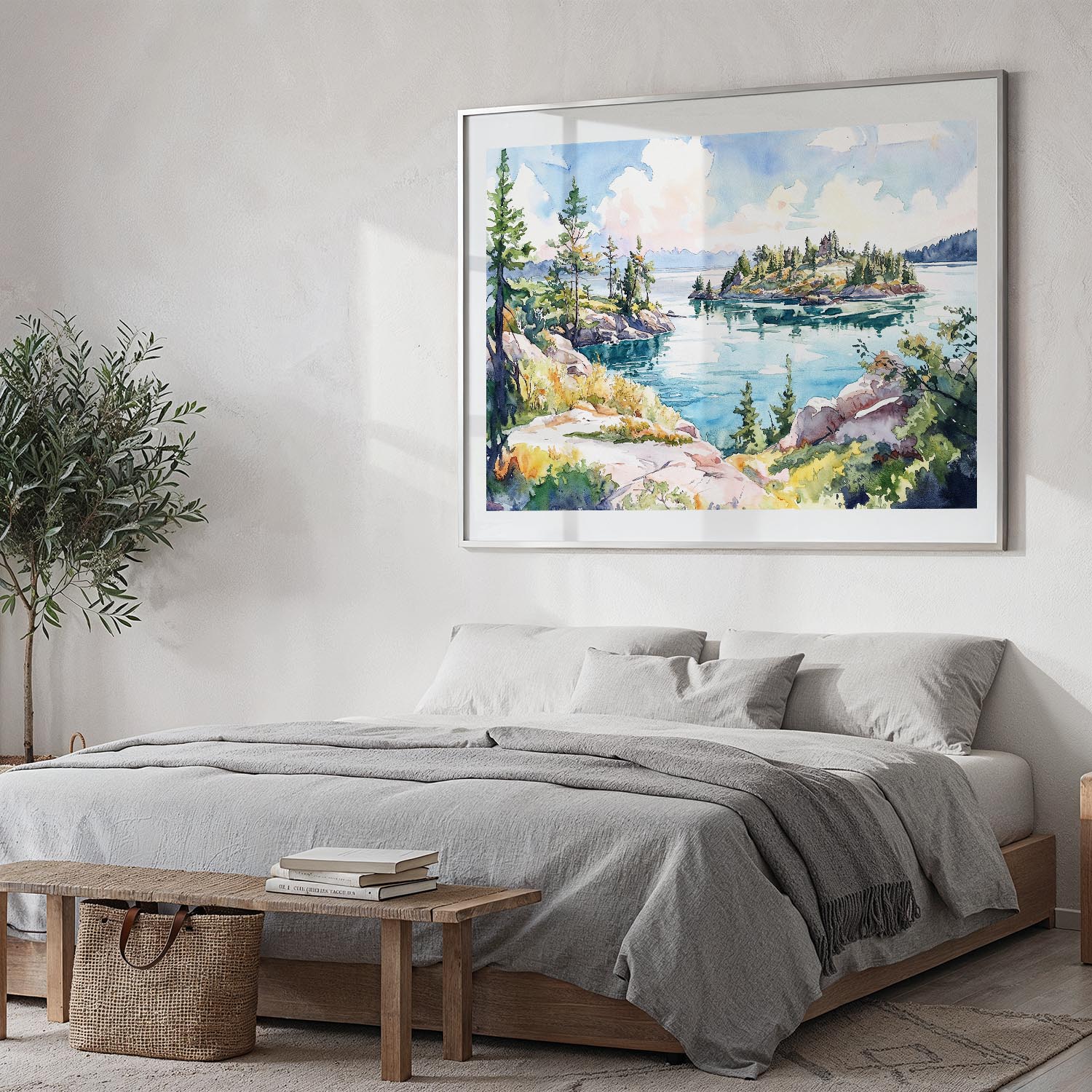 Bring the beauty of Isle Royale National Park into your space with this digital download wall art. The vibrant watercolor captures serene waters and lush greenery, offering a simple way to print and enjoy instantly in your home.