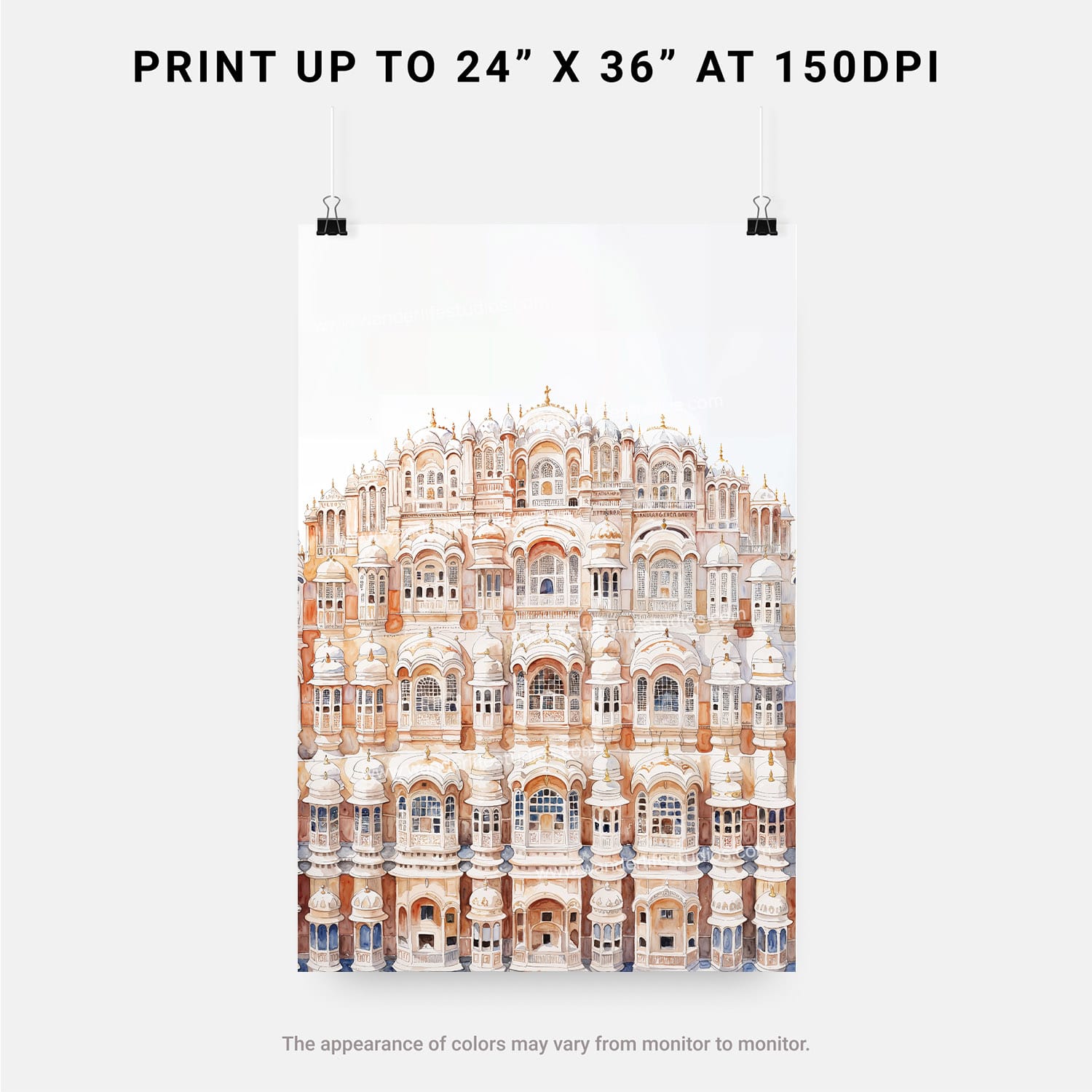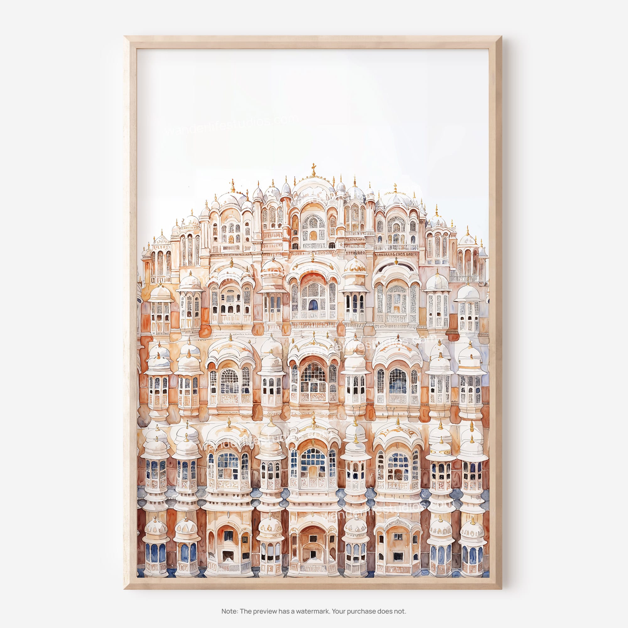 Jaipur Palace of Winds Watercolor Art – Digital Download Wall Art