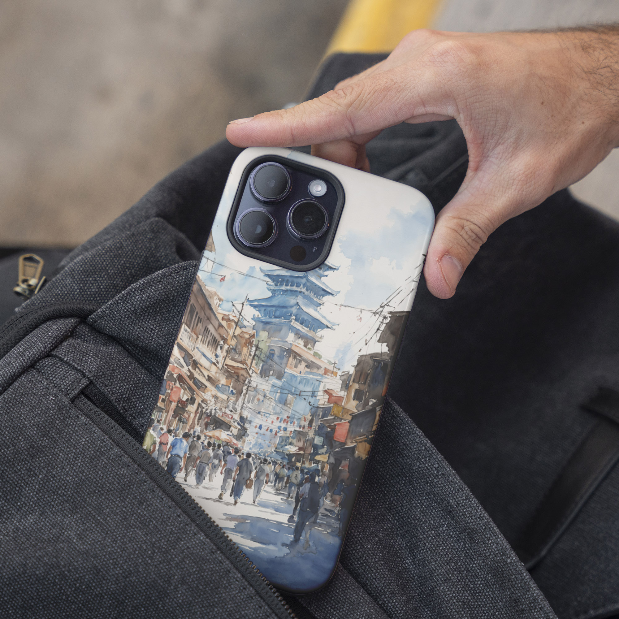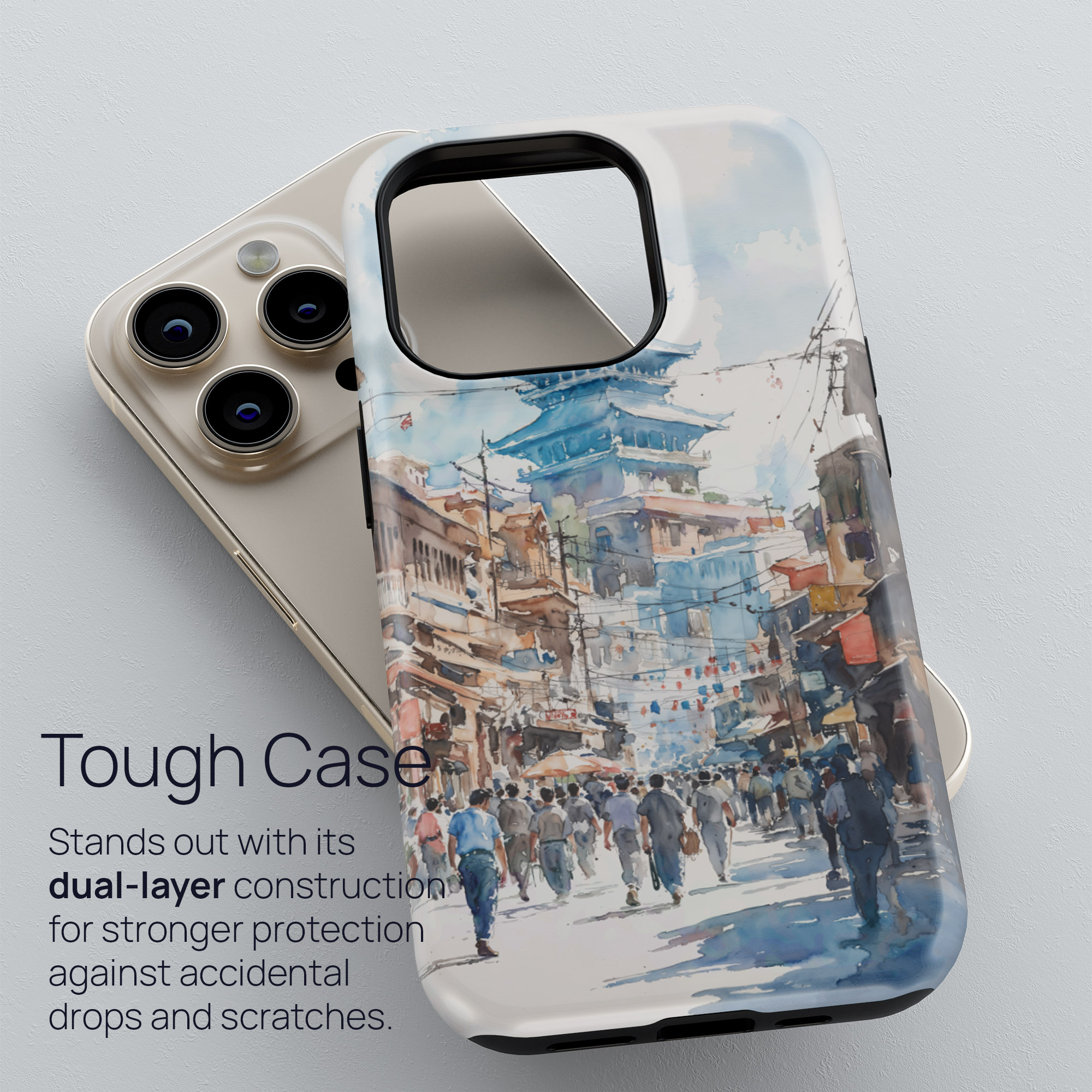 Kathmandu Nepal Watercolor Art Phone Case – Vibrant Street Scene Artwork for Travel Enthusiasts