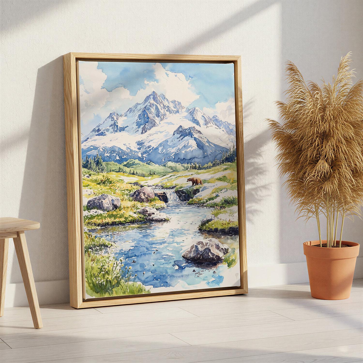 Katmai National Park Canvas Print – Watercolor Bear Landscape Wall Art
