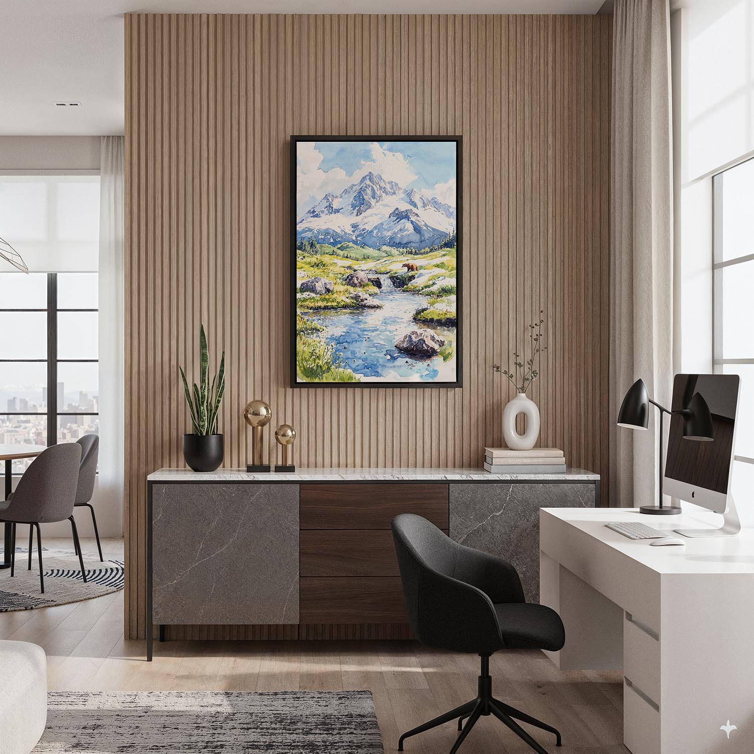 Bring the essence of Katmai National Park into your space with this canvas print featuring a bear by a stream. Perfect for living rooms, offices, or natural-themed decor.