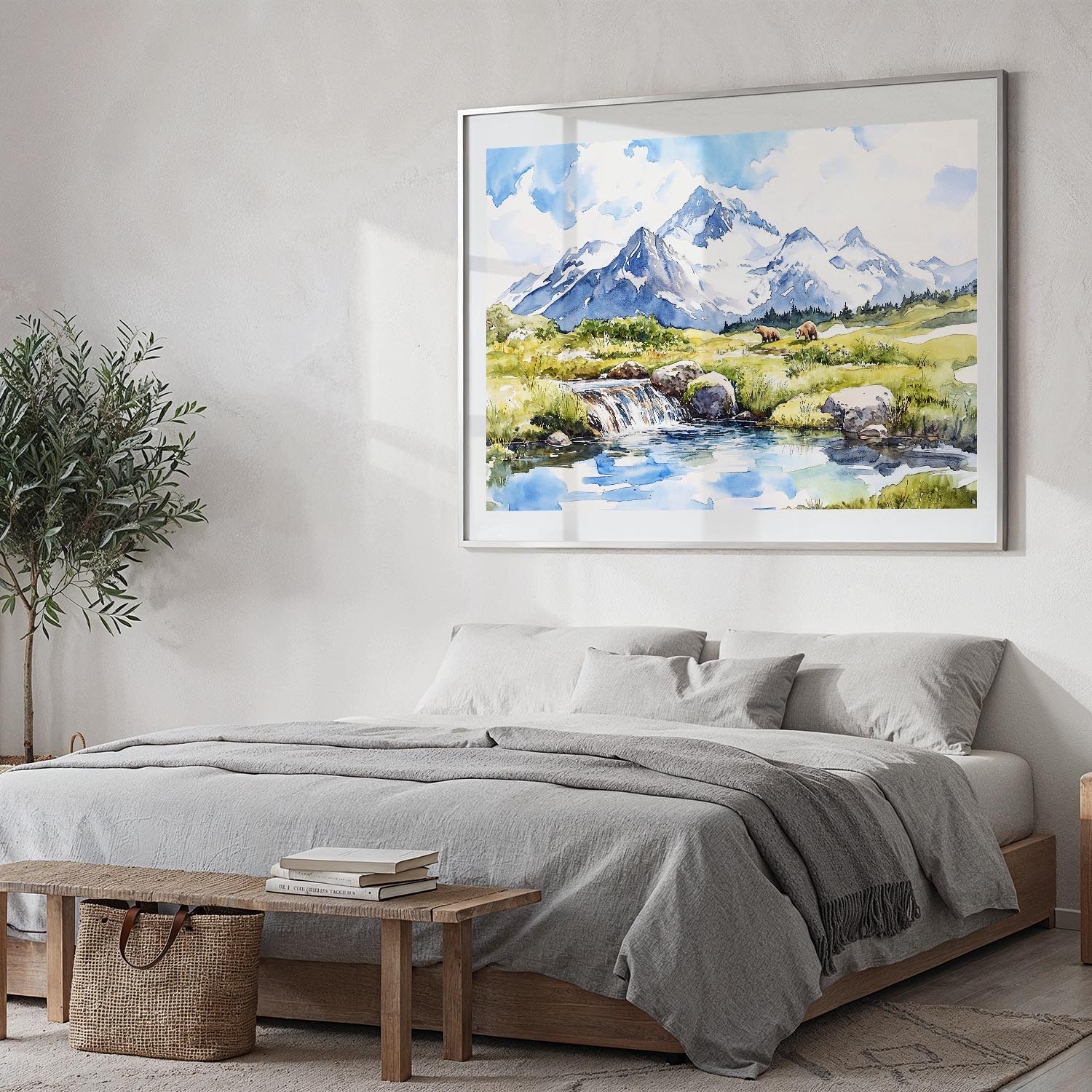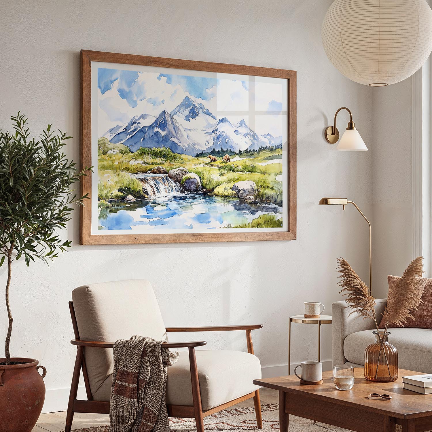 Bring the beauty of Katmai National Park into your home with this watercolor digital download wall art. Featuring a serene landscape with mountains and wildlife, it’s easy to print and display in your favorite space.