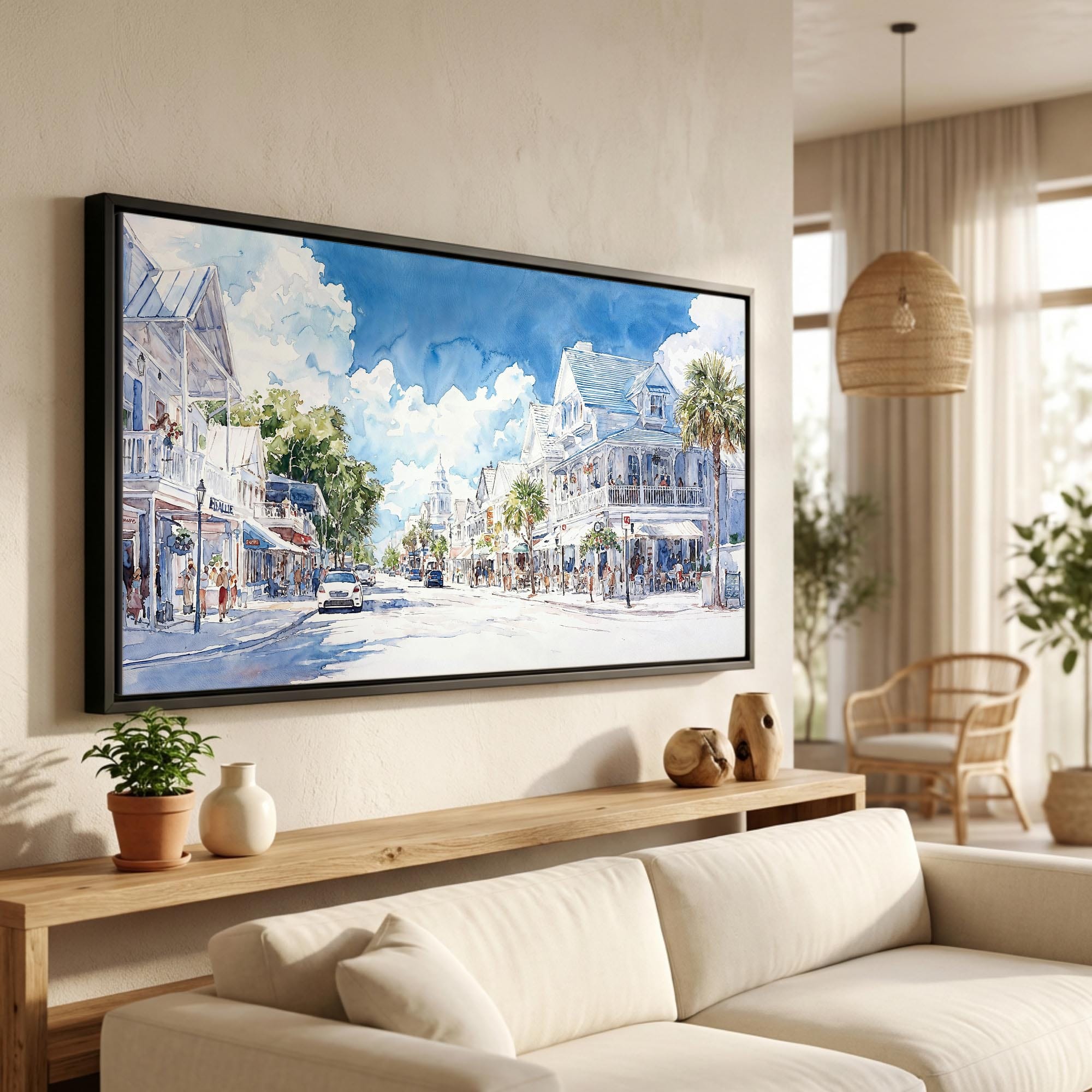 Key West Florida Panorama Canvas Print | Coastal Watercolor Art for Modern Spaces
