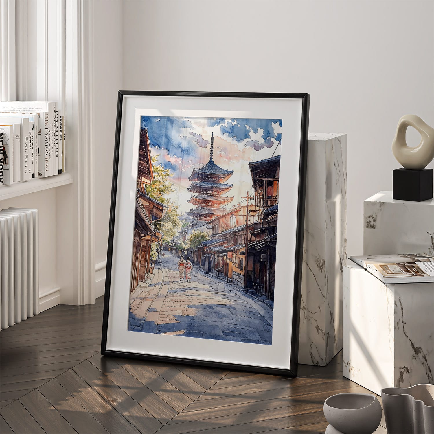 Kyoto Japan Pagoda Sunset Watercolor Art – Digital Download Wall Decor