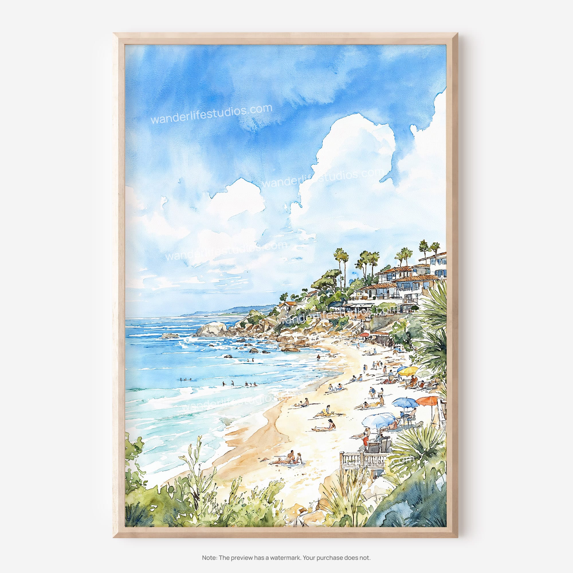 Laguna Beach Watercolor Art – Coastal Digital Download Wall Art
