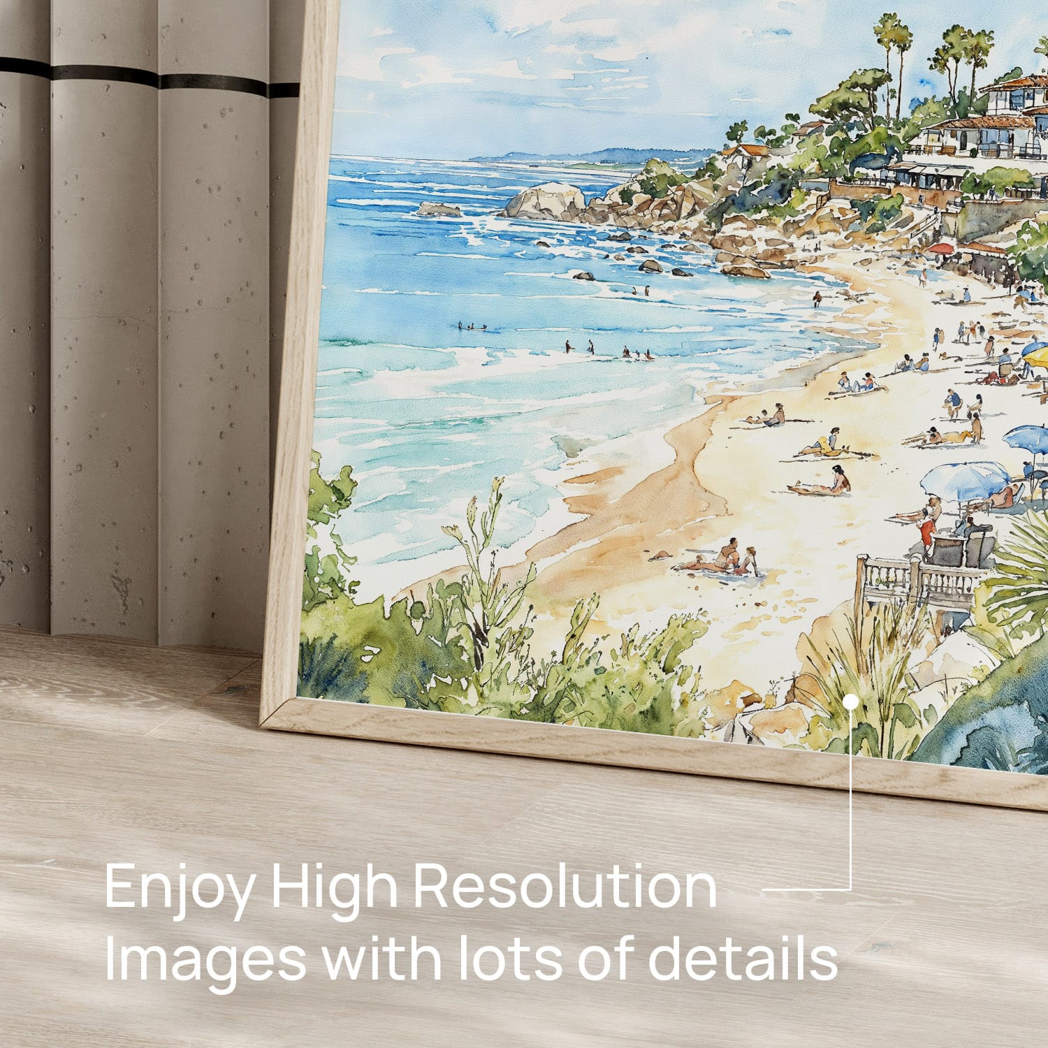 Capture the beauty of Laguna Beach with this vibrant watercolor artwork. The soft blues and warm sandy tones create a relaxing atmosphere, making it ideal for lounges, bedrooms, or home offices. This high-resolution digital file is available in various sizes, allowing for flexible printing options at home or with professionals. Enjoy immediate access and enhance your decor effortlessly with this charming piece.