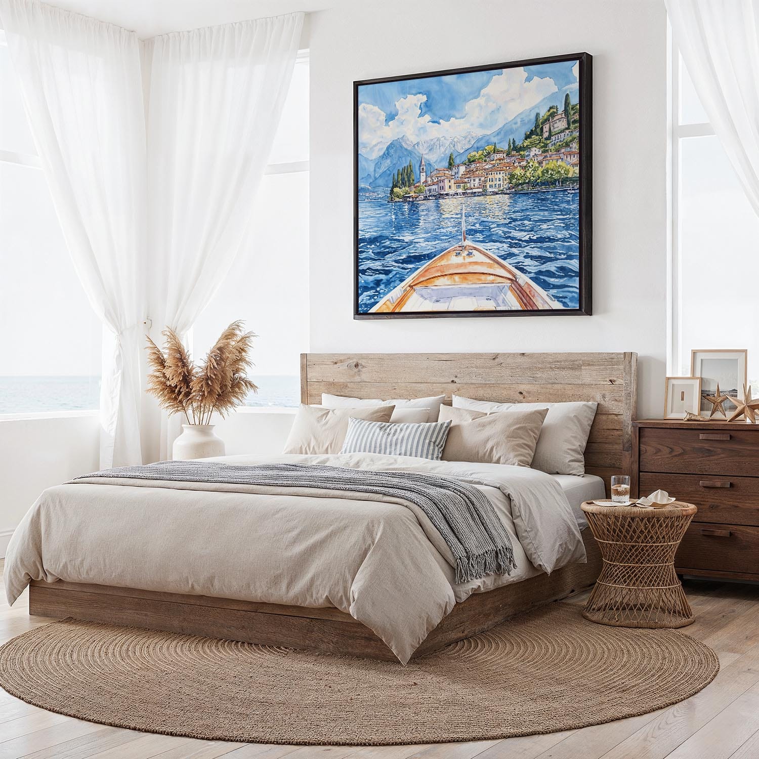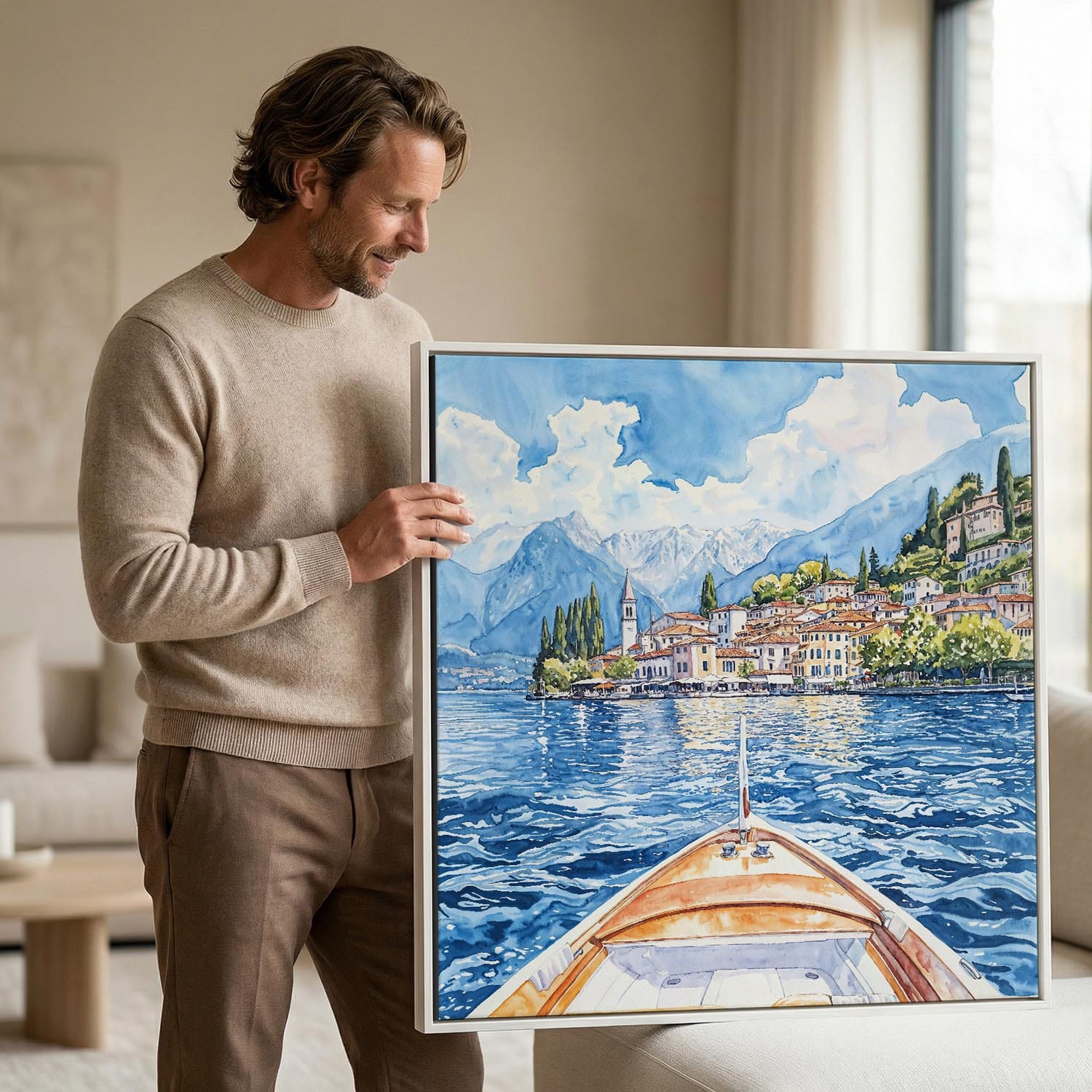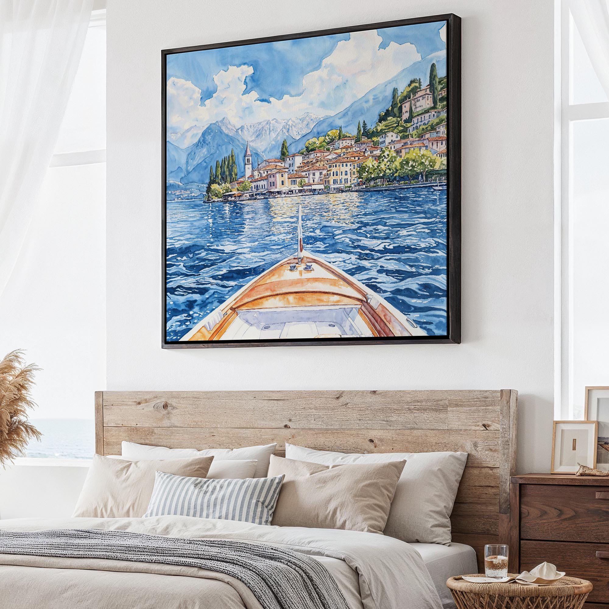 Lake Como Canvas Print | Scenic Italian Waterfront in Watercolor Style