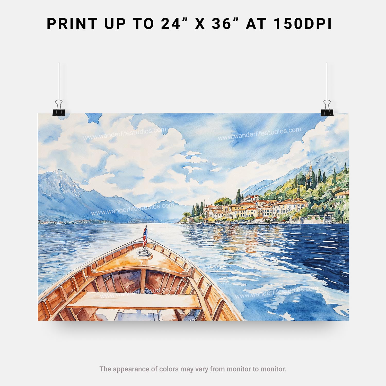 This high-resolution digital download (approximately 5300px x 3200px) can be printed up to 24×36, making it ideal for a stunning display above sofas, in dining rooms, or as part of an office gallery wall. It speaks to travelers, nature lovers, and anyone who appreciates the beauty of Italian lakeside living.