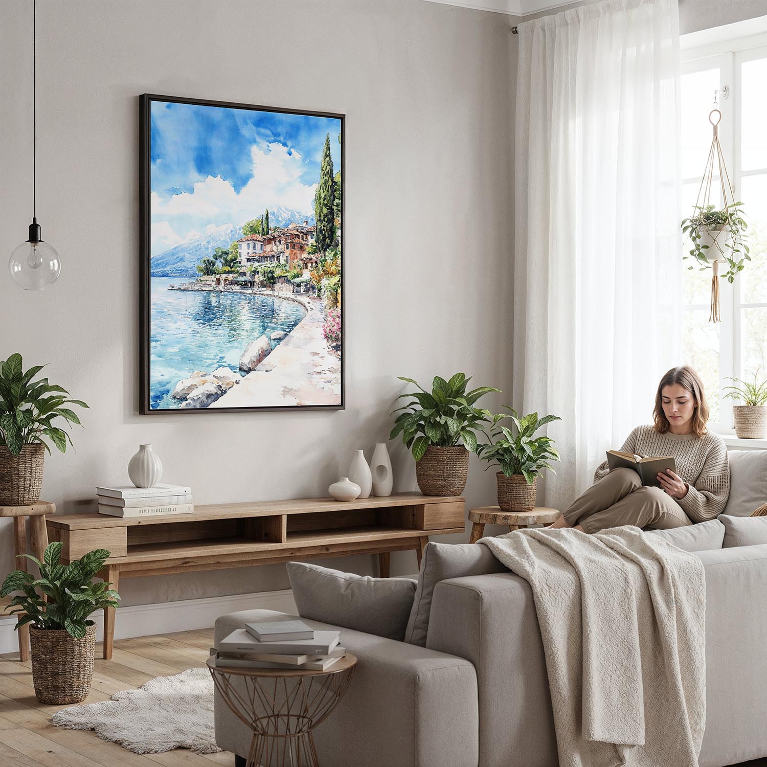 Bring the charm of Lake Garda into your home with this watercolor canvas print. It’s ready to hang and adds a touch of serene beauty to any space, like living rooms and offices.