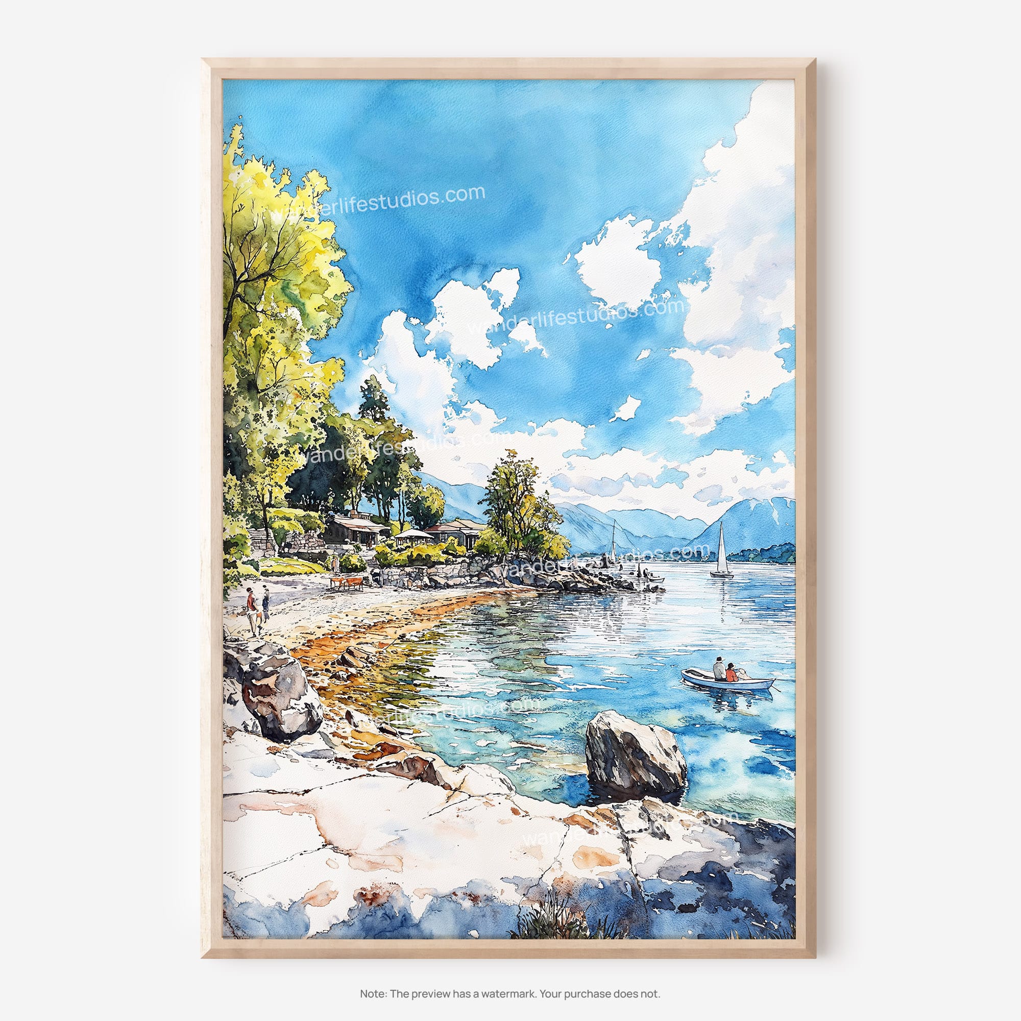 This charming artwork highlights the tranquil waters and lush surroundings of Lake Windermere in a brilliant watercolor style. The vivid colors and serene composition will bring warmth and a sense of relaxation to any room. Available as a high-resolution digital file, you can print it at home or through a local print service in various sizes. Ideal for living rooms, bedrooms, or workspaces, this piece adds a personal touch and is instantly accessible for your enjoyment.
