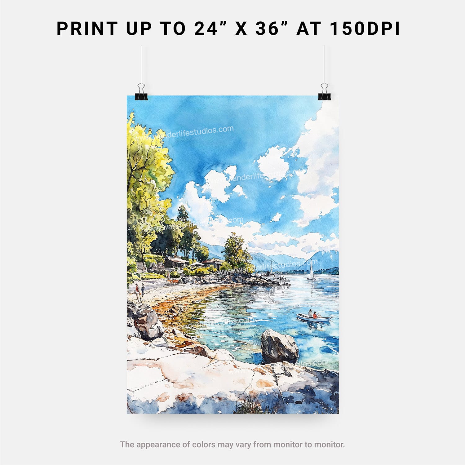 Lake Windermere Watercolor Art Print – Digital Download for Home Decor