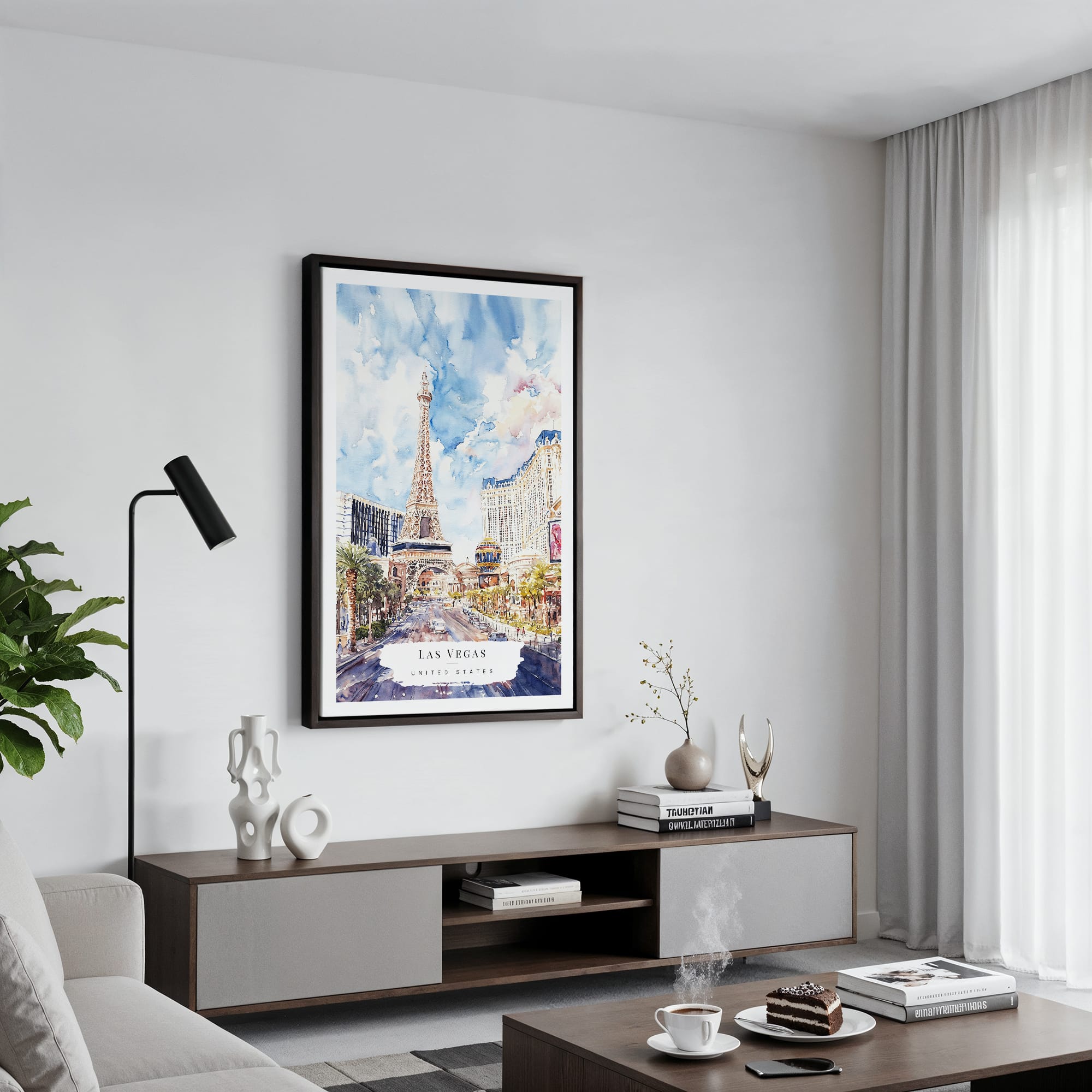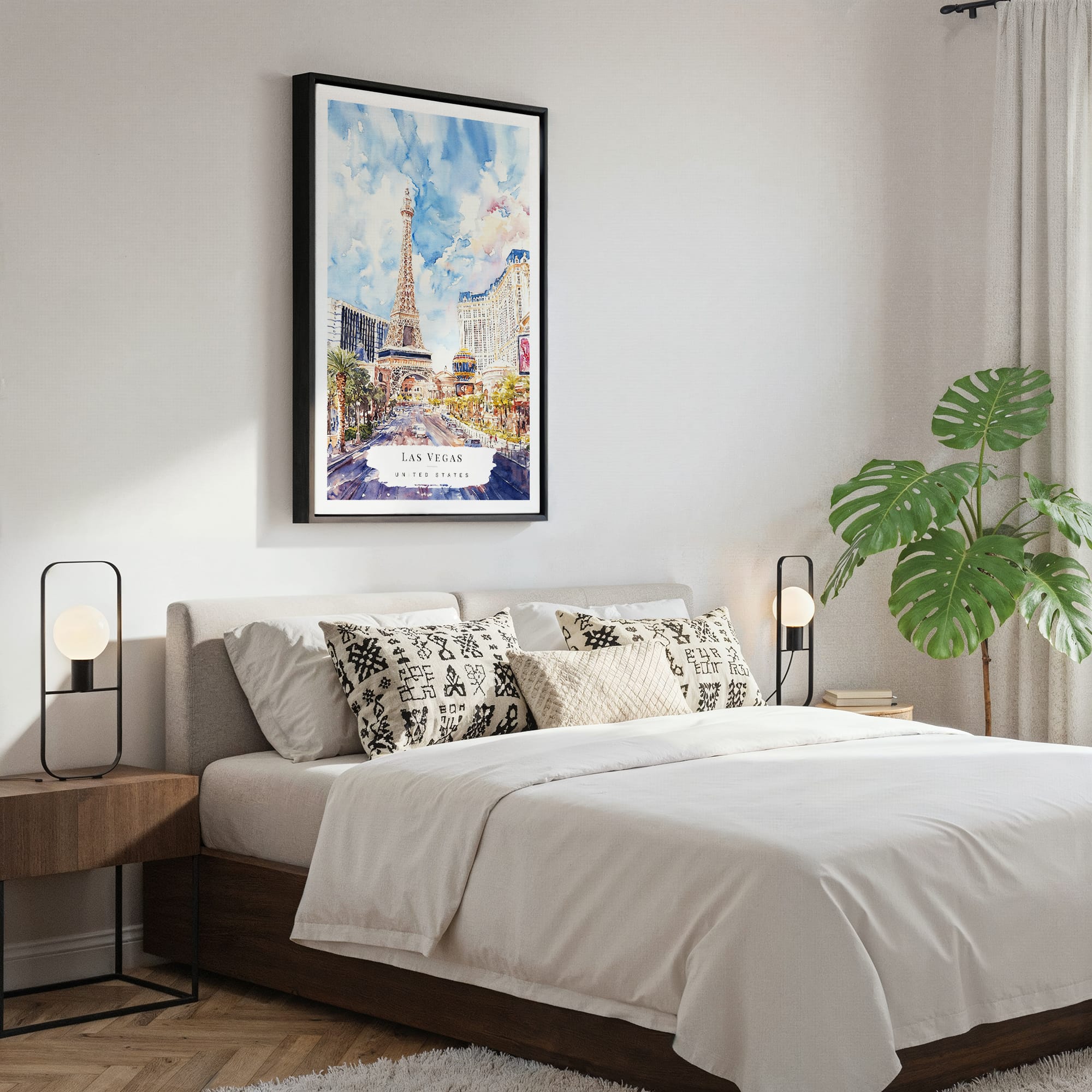 Las Vegas Watercolor Canvas Art Print – Iconic Eiffel Tower and Strip Scene