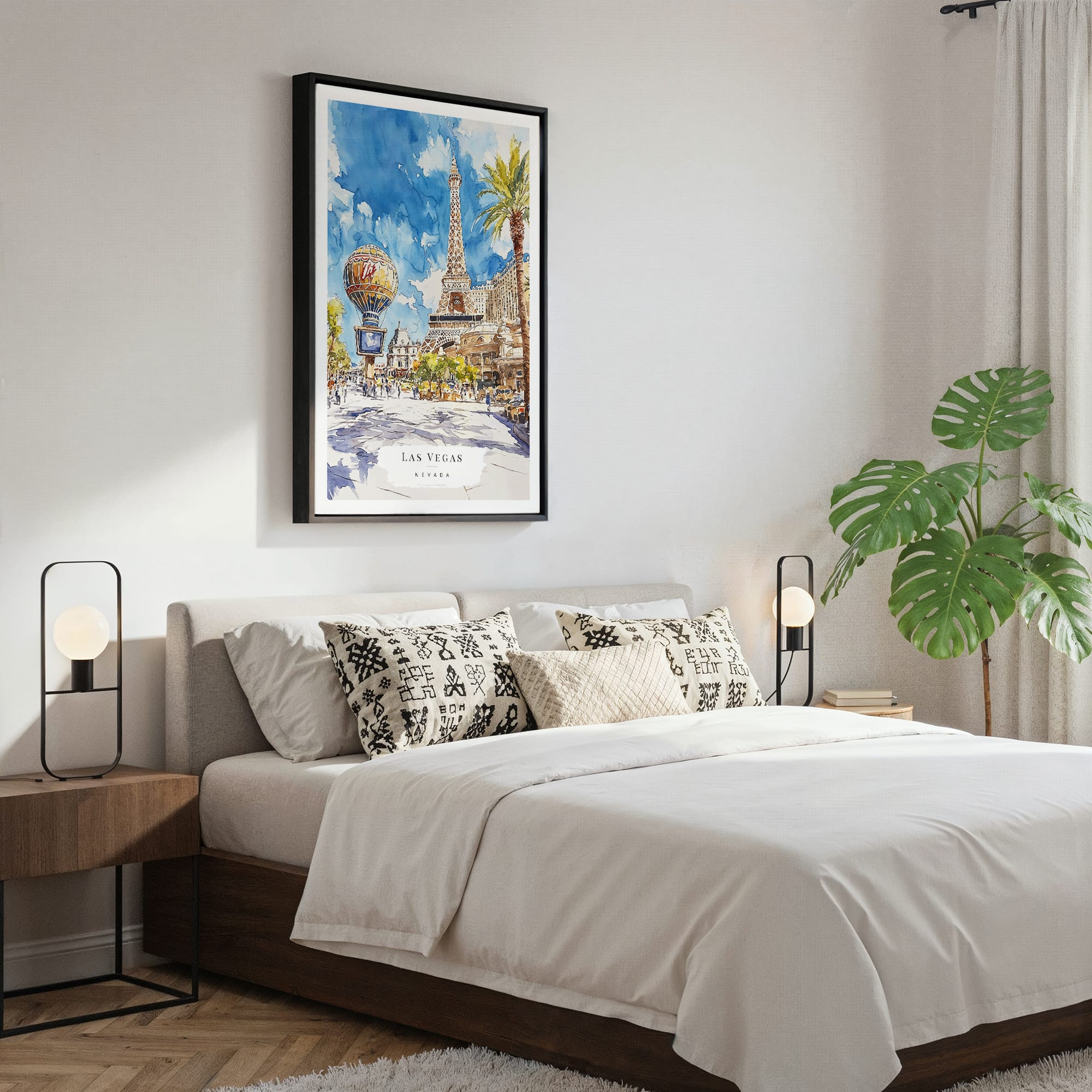 Las Vegas Watercolor Canvas Print – Vibrant Cityscape Art for Home Décor