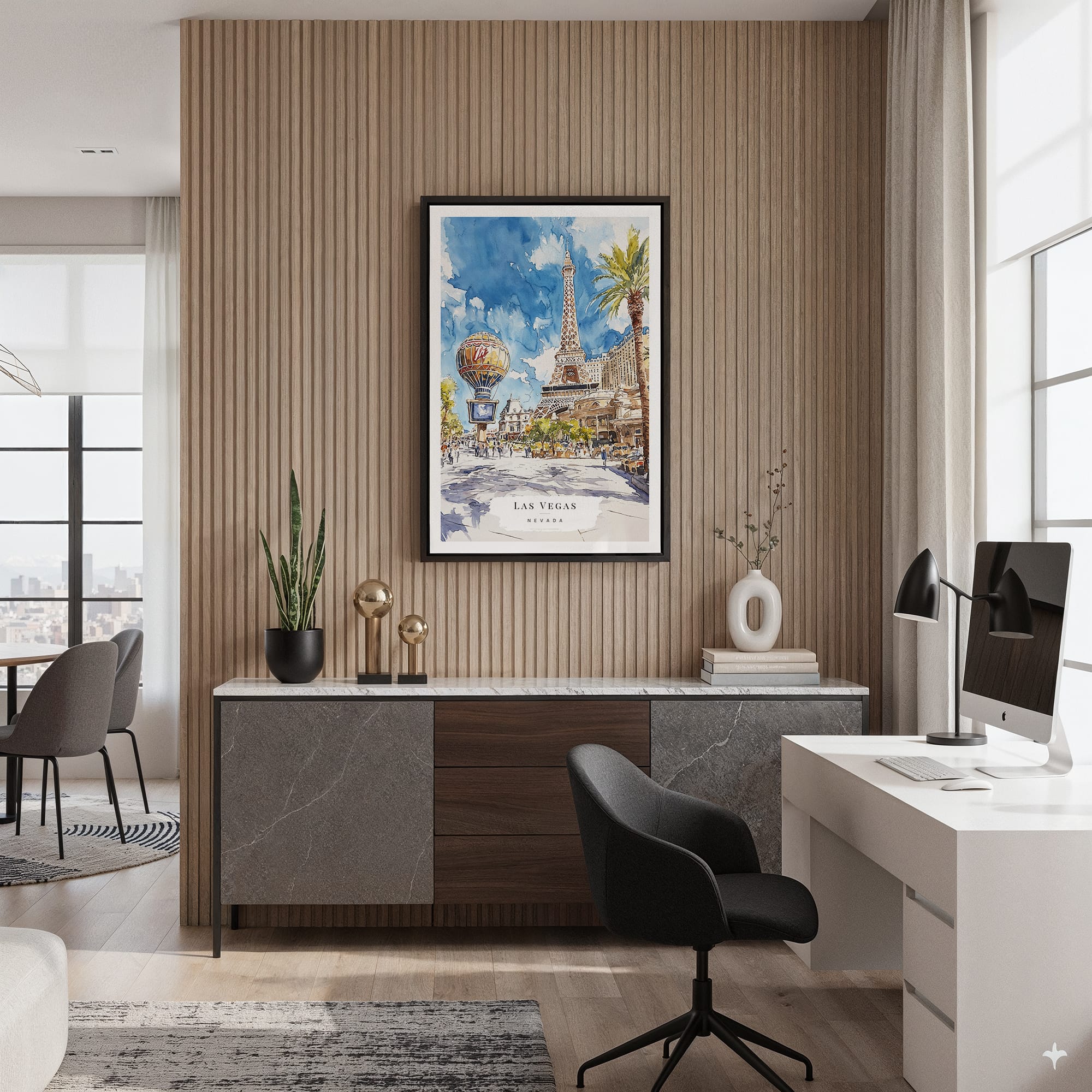 Elevate your space with this Las Vegas watercolor canvas print, highlighting colorful city scenes and lively energy. It’s an ideal addition to living rooms or offices, adding a playful touch while being effortless to hang.