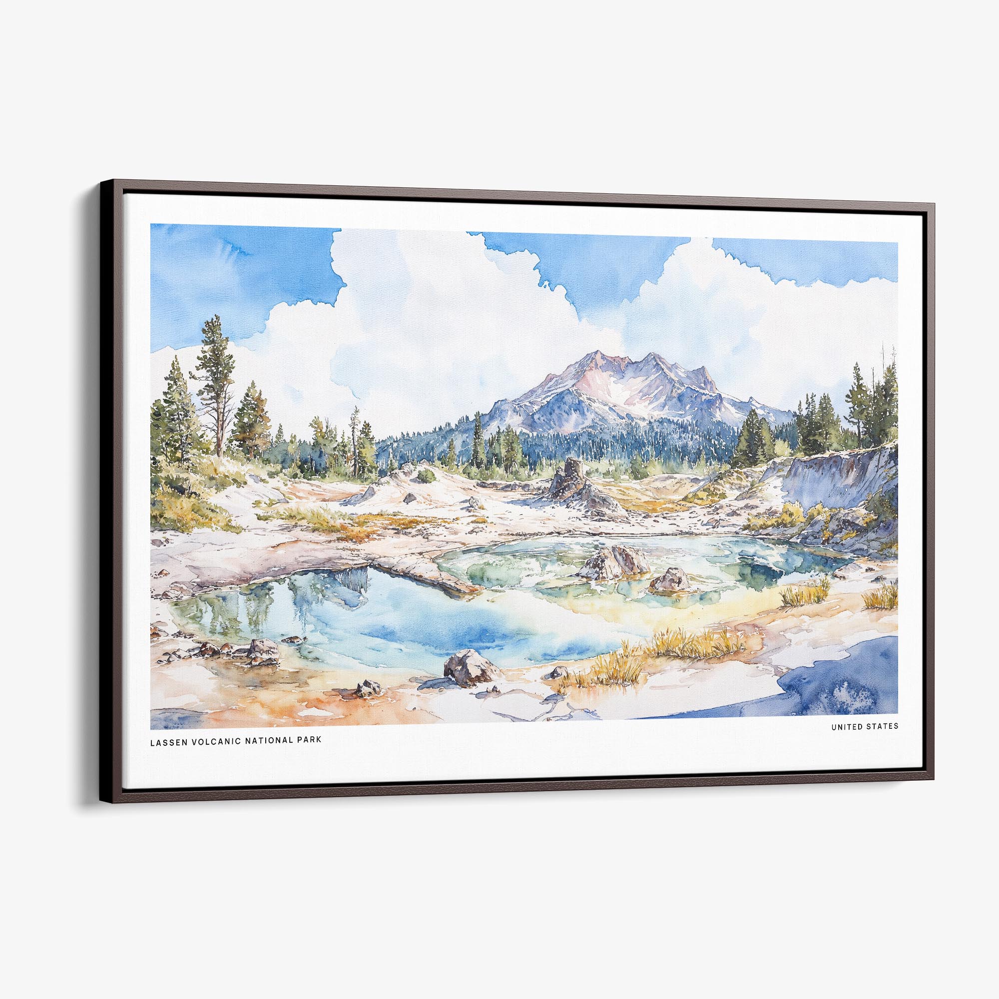 Lassen Volcanic National Park Canvas Print – Watercolor Landscape Art