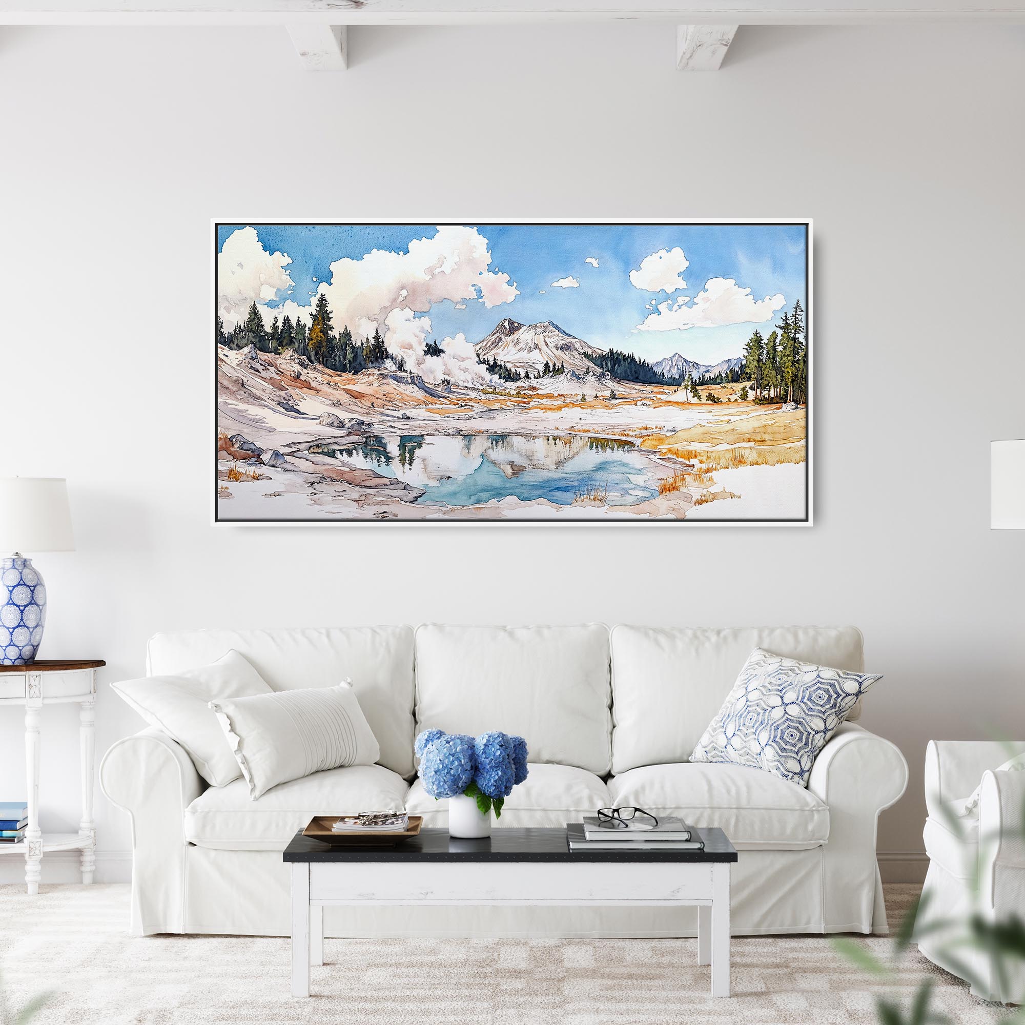 Lassen Volcanic National Park Panorama Canvas Print | Mountain and Lake Watercolor Art