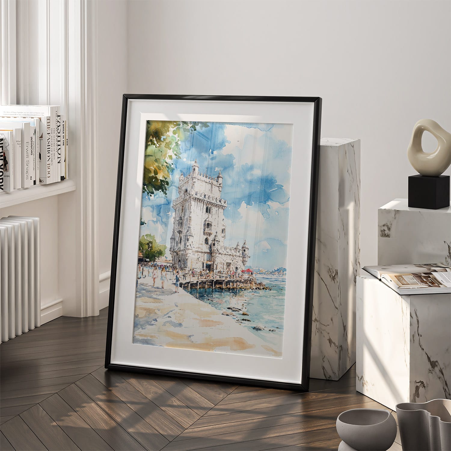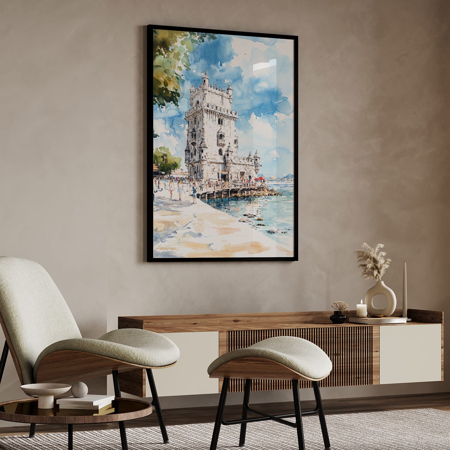 Lisbon Torre de Belém Watercolor Art – Digital Download Wall Artwork