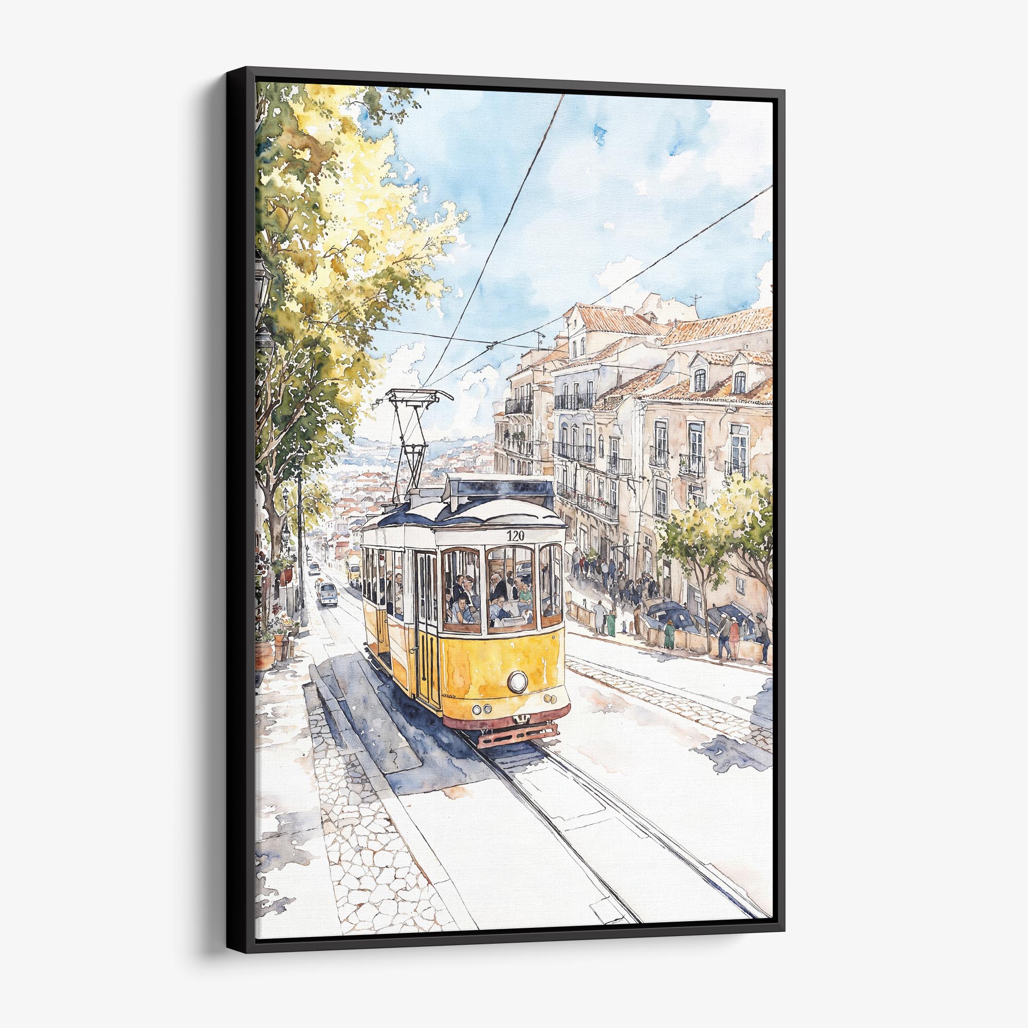 Lisbon Tram Canvas Print – Watercolor Cityscape Wall Art