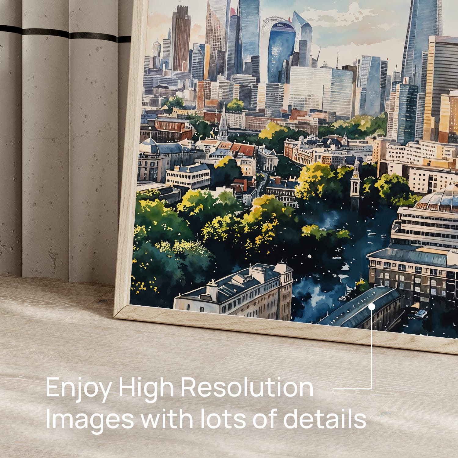 London The Shard Watercolor Art – Digital Download Cityscape Wall Artwork