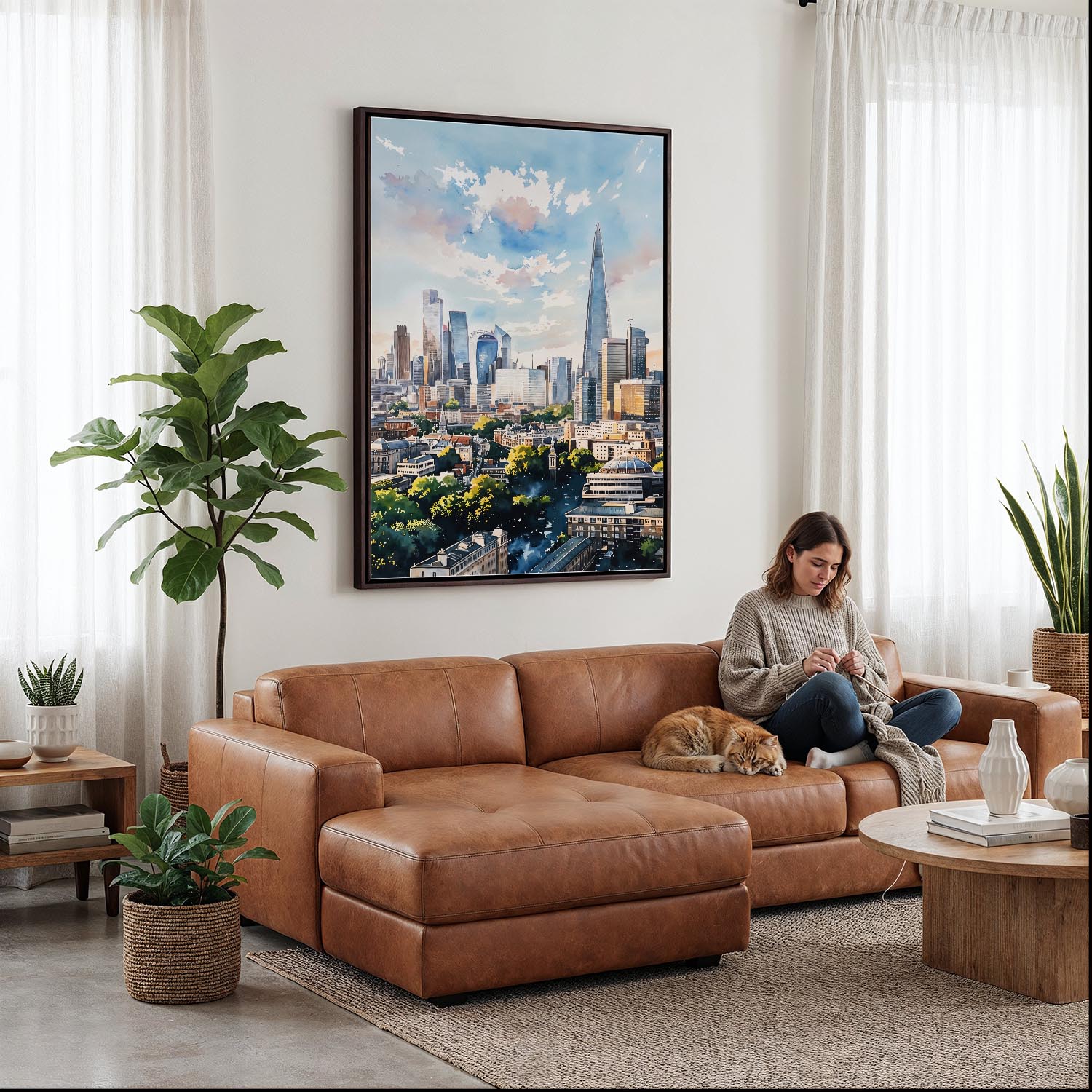 Discover the vibrant city of London through this captivating canvas print featuring The Shard. The artwork beautifully captures the modern skyline, with soft watercolor hues that evoke the lively atmosphere of the city.