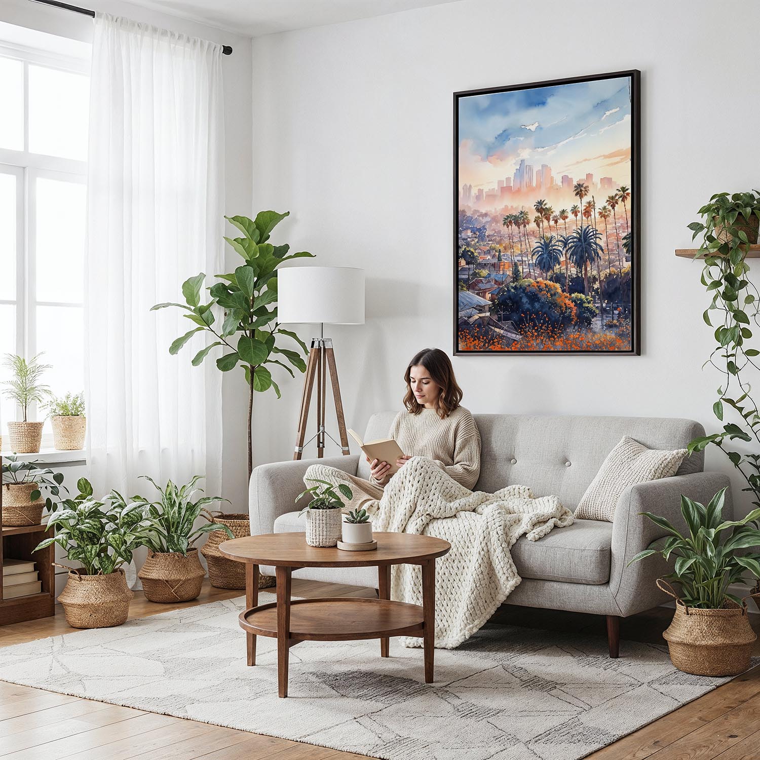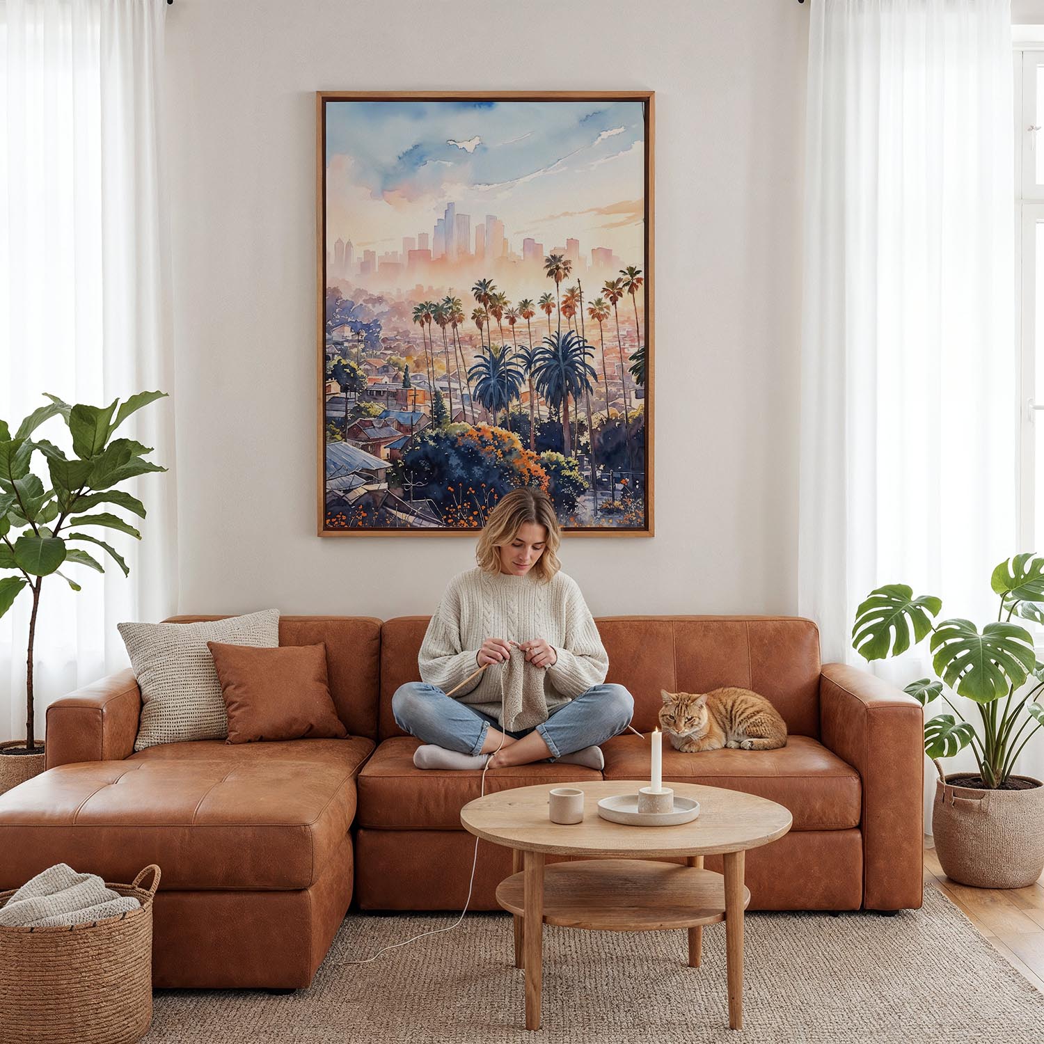 Bring the vibrant energy of Los Angeles into your space with this canvas print. Featuring palm trees and a stunning skyline, it’s perfect for living rooms, offices, or bedrooms.