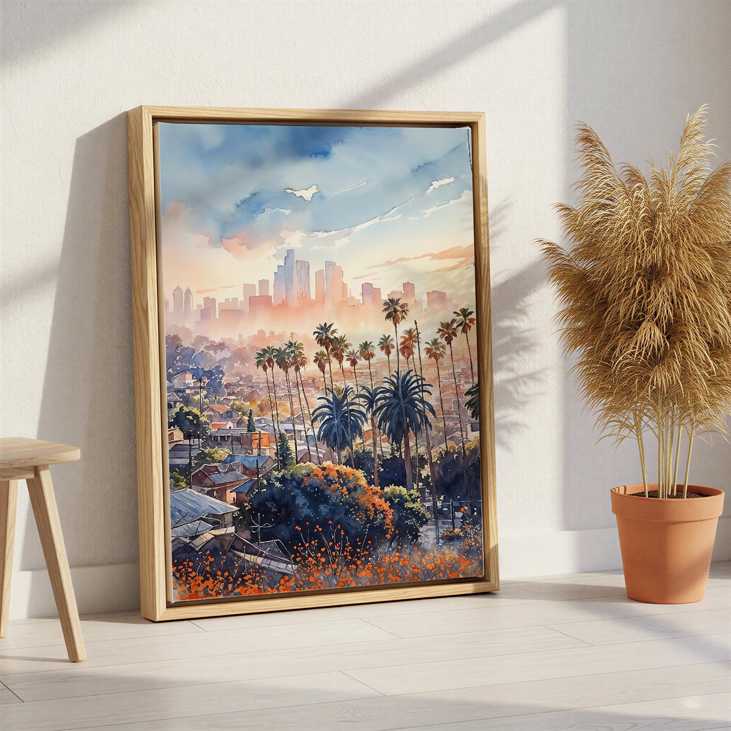 Los Angeles Skyline Watercolor Canvas Print – Cityscape Wall Art