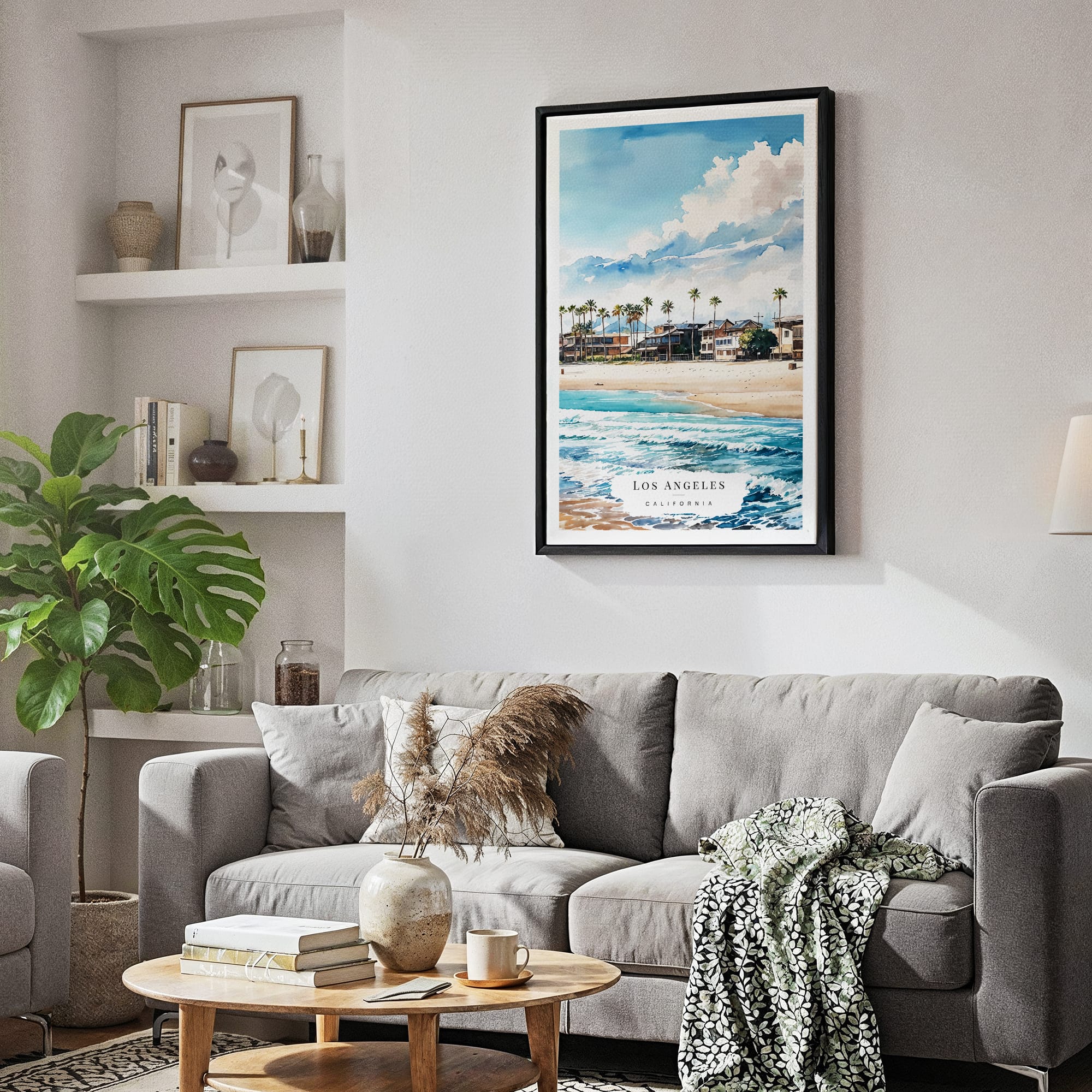 This artwork captures the charm of coastal living with its vibrant blues and warm sandy hues. Ideal for brightening up living rooms, bedrooms, or even offices, it brings a relaxed, sunny vibe to your decor. Printed on high-quality canvas with fade-resistant inks, it comes ready to hang. A delightful piece for personal enjoyment or a thoughtful gift for those who love the California coast.