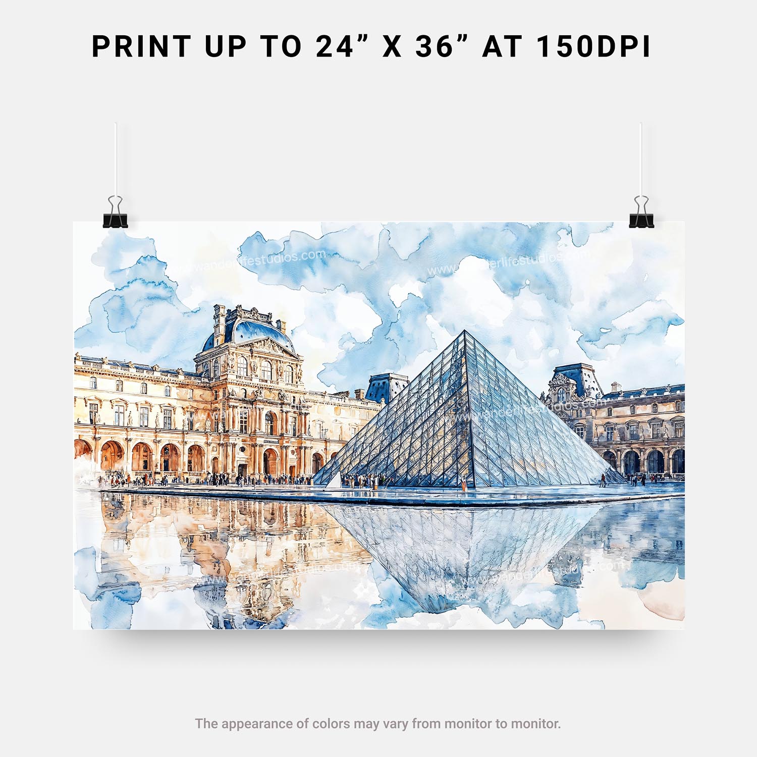 Louvre Museum Watercolor Art Print – Digital Download Wall Art
