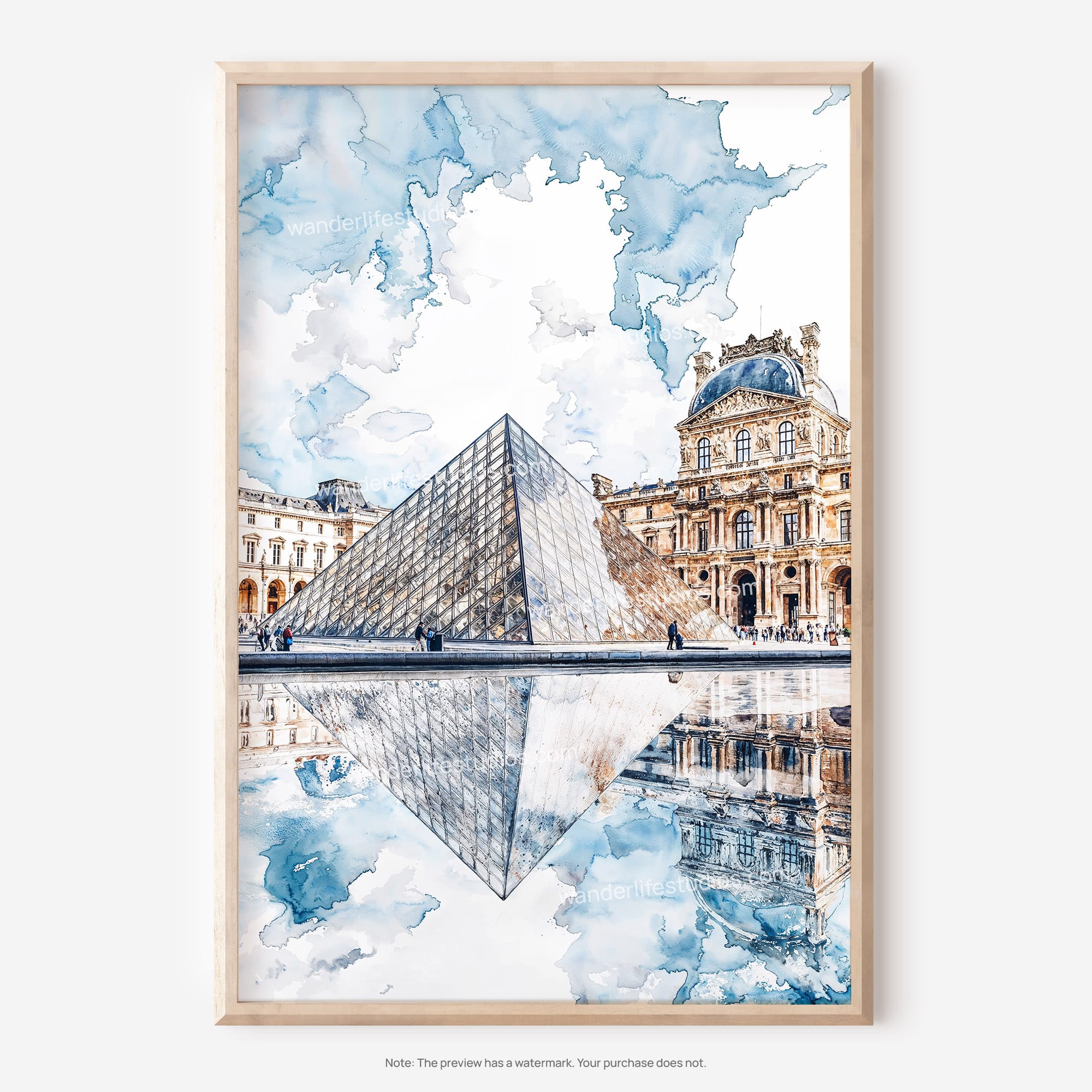 Louvre Pyramid Watercolor Digital Download Wall Art
