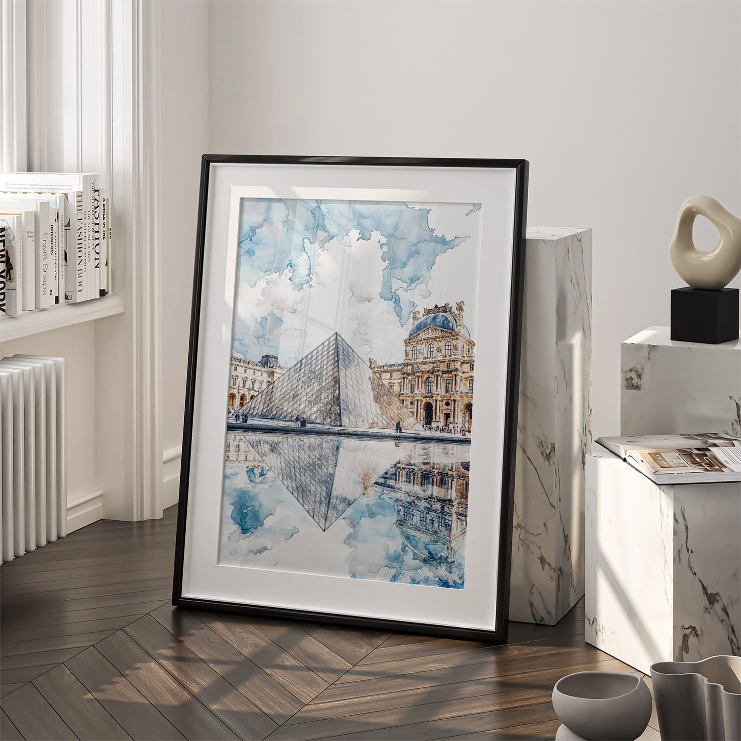 This artwork showcases the iconic Louvre Pyramid surrounded by rich architectural details and soft blue tones. The design creates a refined atmosphere, making it ideal for living areas, offices, or personal galleries. Delivered as a high-resolution digital file, it’s easy to print in various dimensions at home or through a local print shop. Enjoy immediate access to elevate your walls and celebrate the beauty of art and architecture.