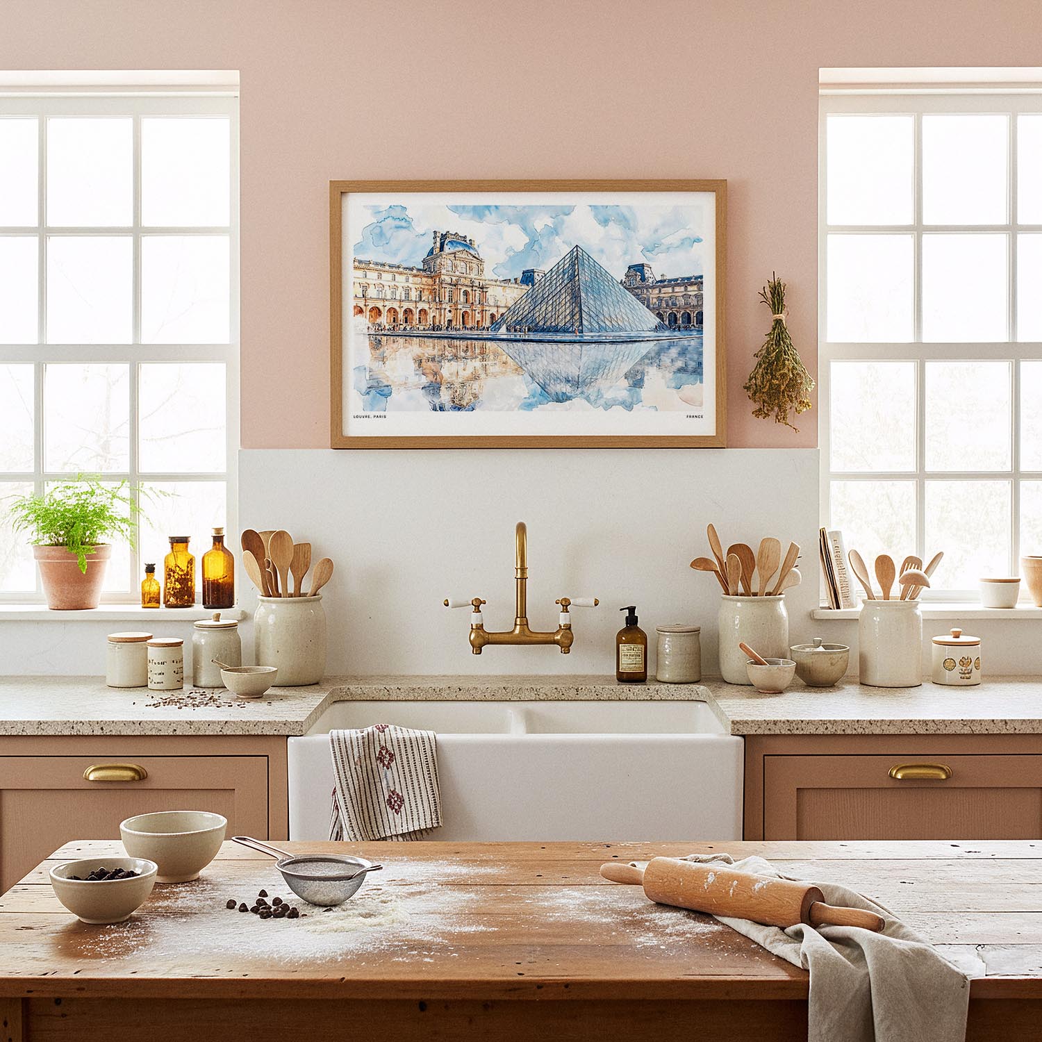 Louvre Watercolor Art Print – Iconic Parisian Landmark Wall Art