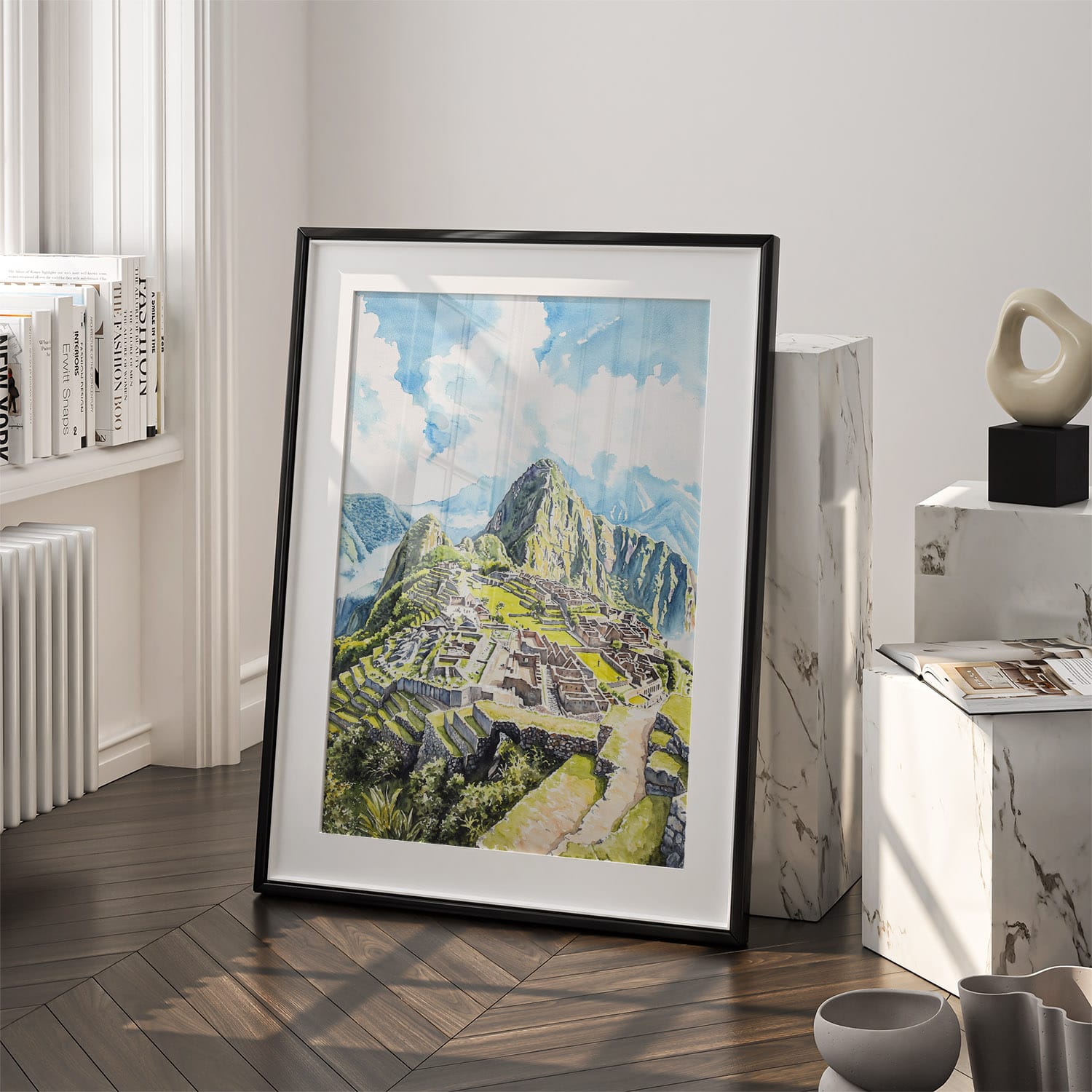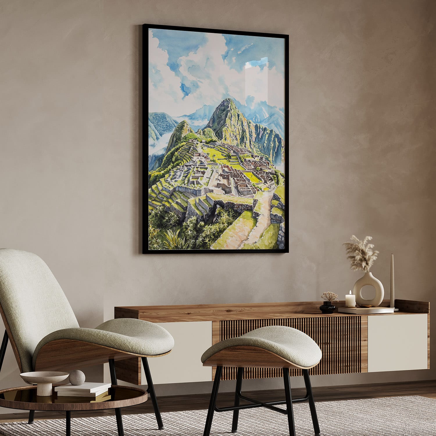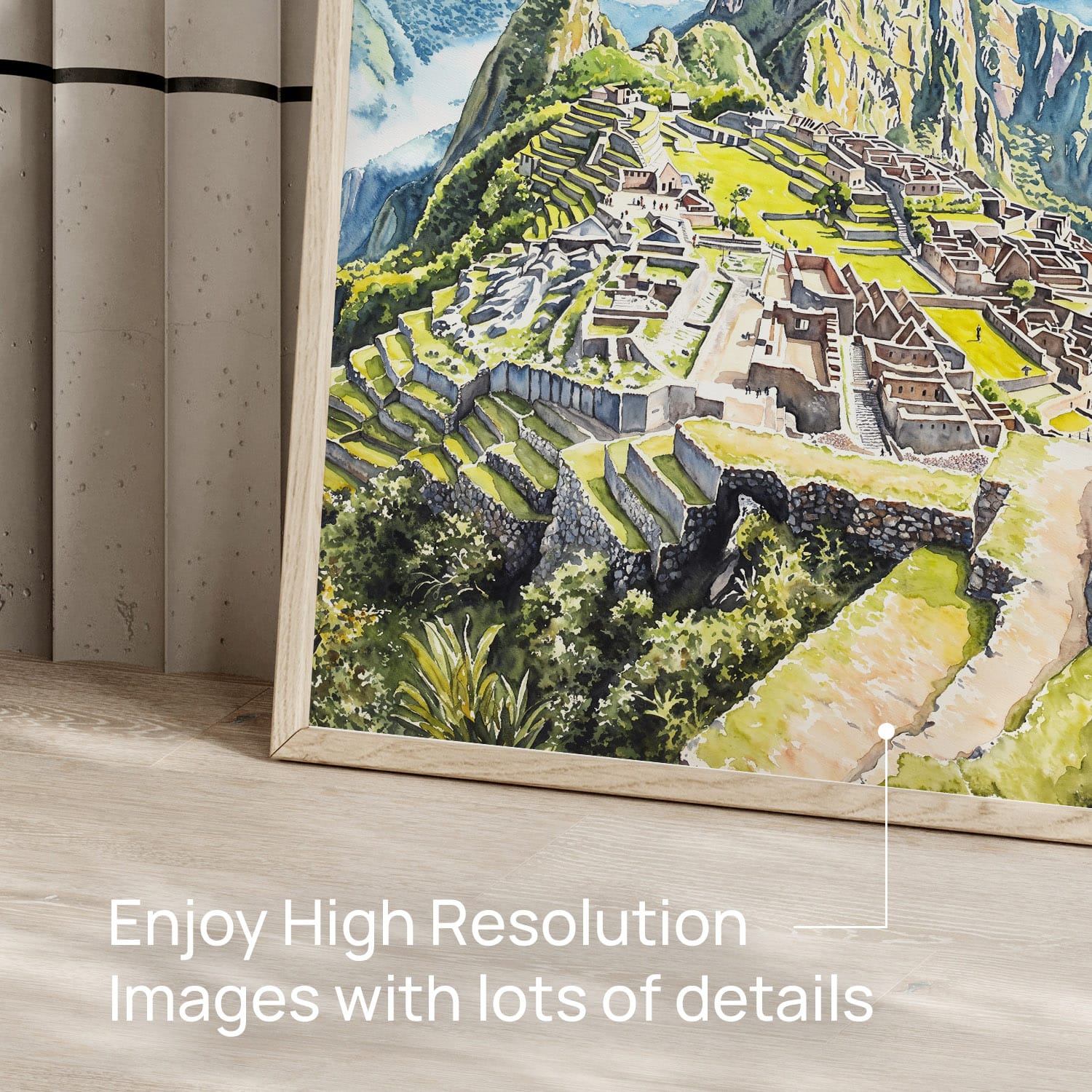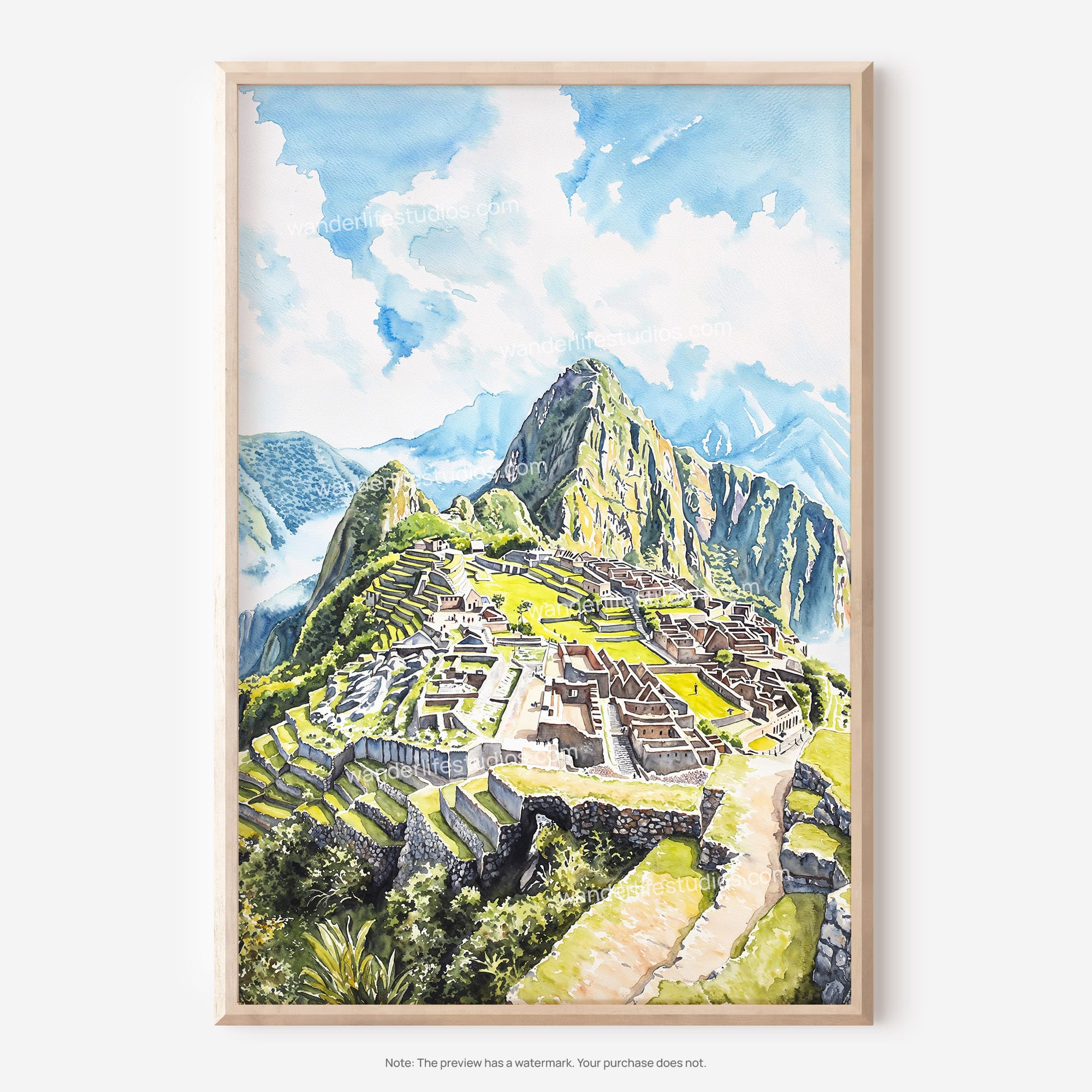 Machu Picchu Watercolor Art Print – Digital Download for Home Decoration