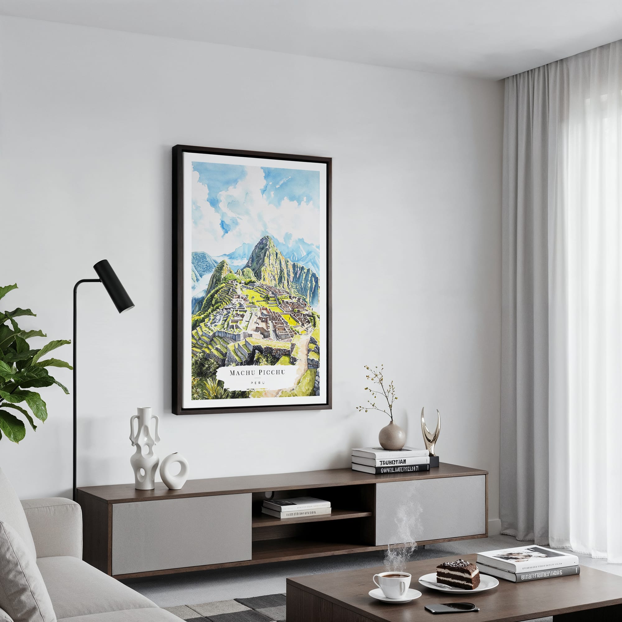 Machu Picchu Watercolor Canvas Art Print – Scenic Landscape Wall Decor