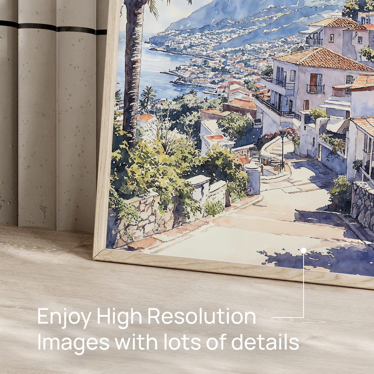 This artwork captures the essence of Madeira with its picturesque coastal views and bright architectural details. The combination of gentle blues and earthy tones creates a welcoming atmosphere, making it a lovely addition to living rooms, bedrooms, or offices. Delivered as a high-resolution digital file, it allows you to print in various sizes at home or your favorite print shop. Enjoy instant access and the flexibility to refresh your decor with this captivating landscape.